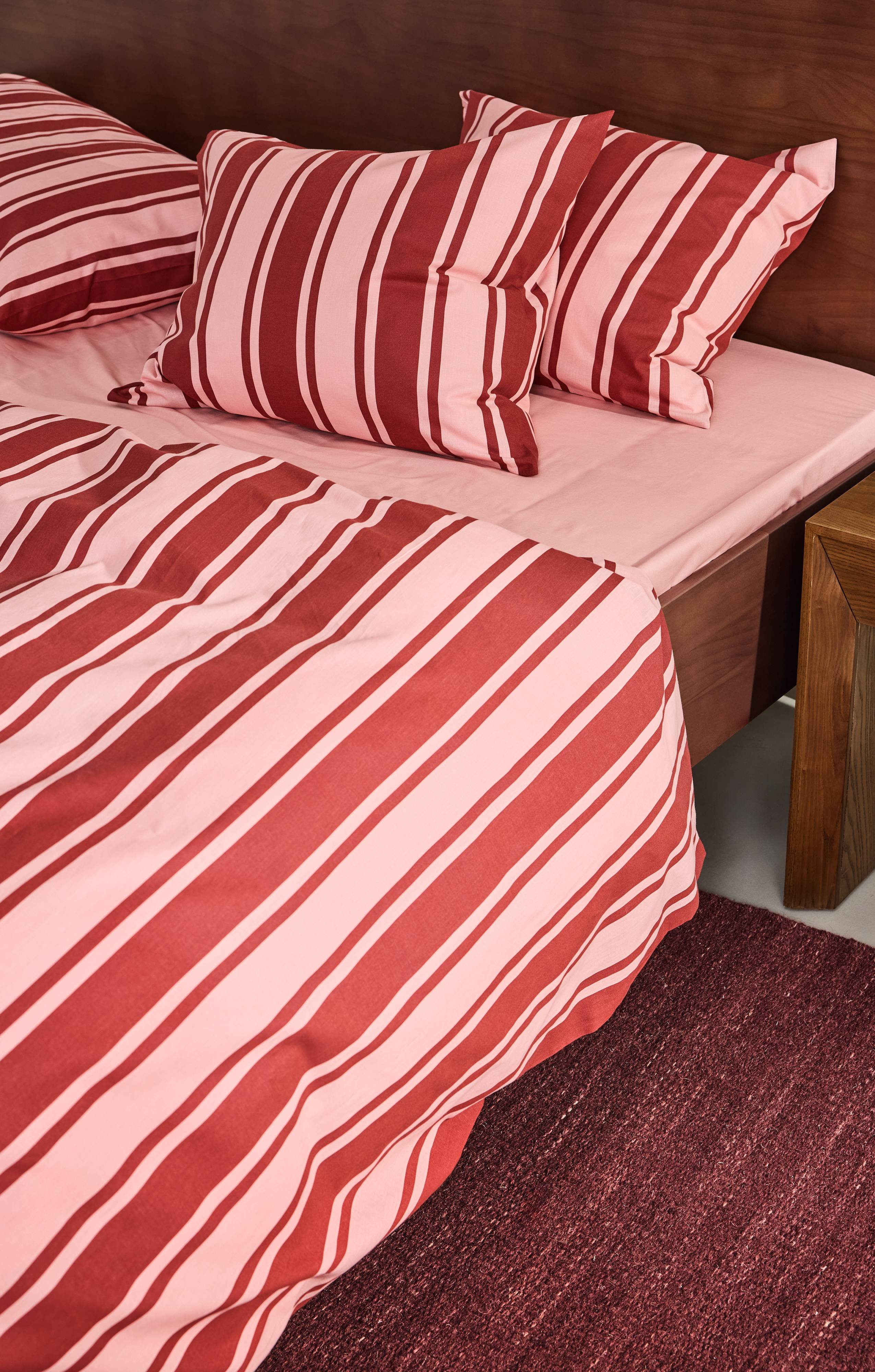 DEBBIE-sengesættet indfanger en retrovibe med sine pigmentprintede striber, hvilket gør det til et must-have for alle, der søger trendy interiørdesign. Sættet består af 1 dynebetræk og et pudebetræk og er en del af DEBBIE-familien med matchende elementer, der fuldender looket og løfter ethvert soveværelses æstetik.