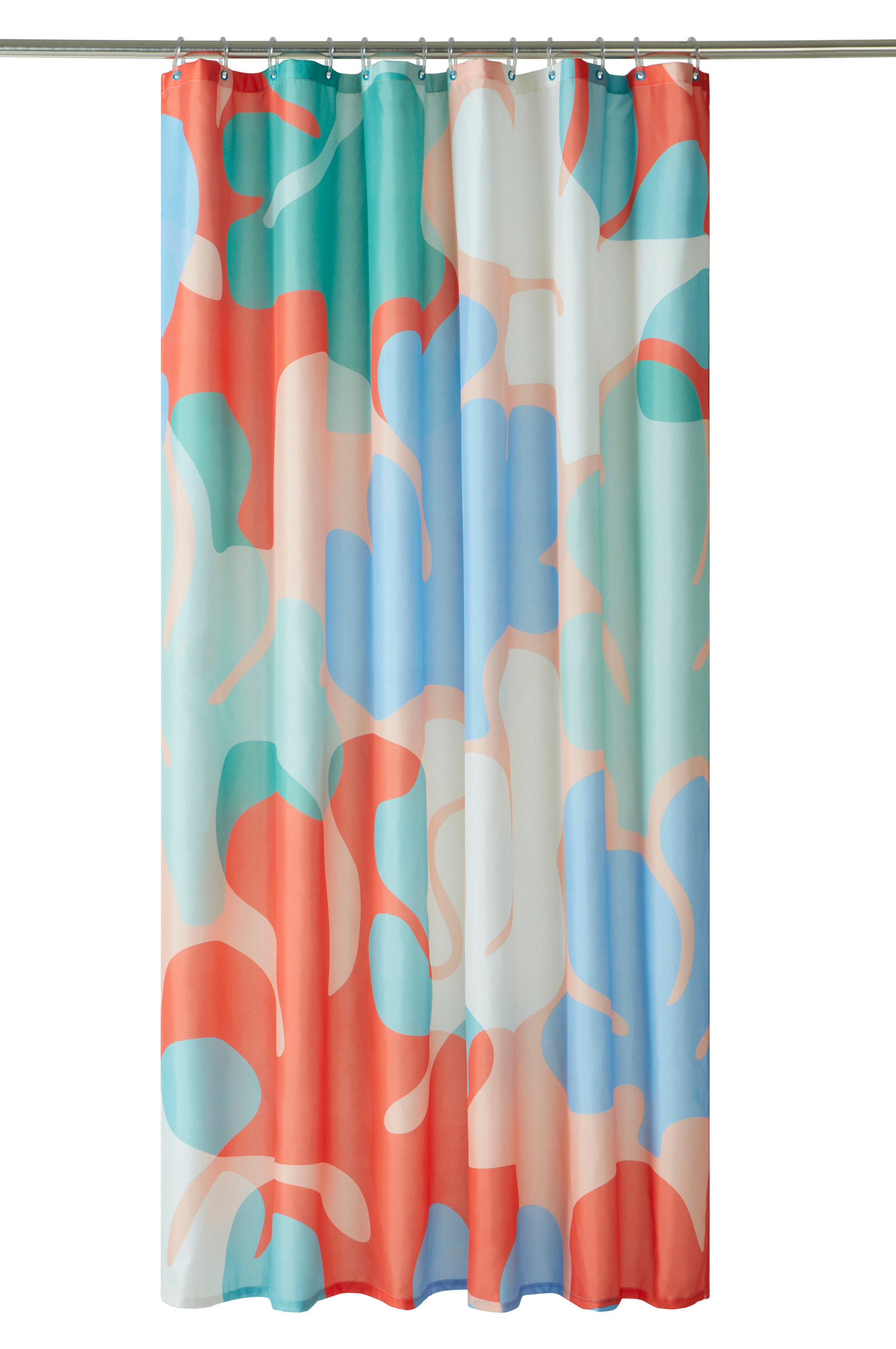 Badeforhæng i polyester med digitalprintet mønster i harmoniske farver, designet af Maria Carlberg. Både farve og form giver mønsteret en flot retrostil. Digitalprint giver distinkt mønster og klare farver. Stoffet har vandafvisende belægning. Øverst har badeforhænget 12 metalringe i matchende farve. Ringe til ophængning medfølger ikke.