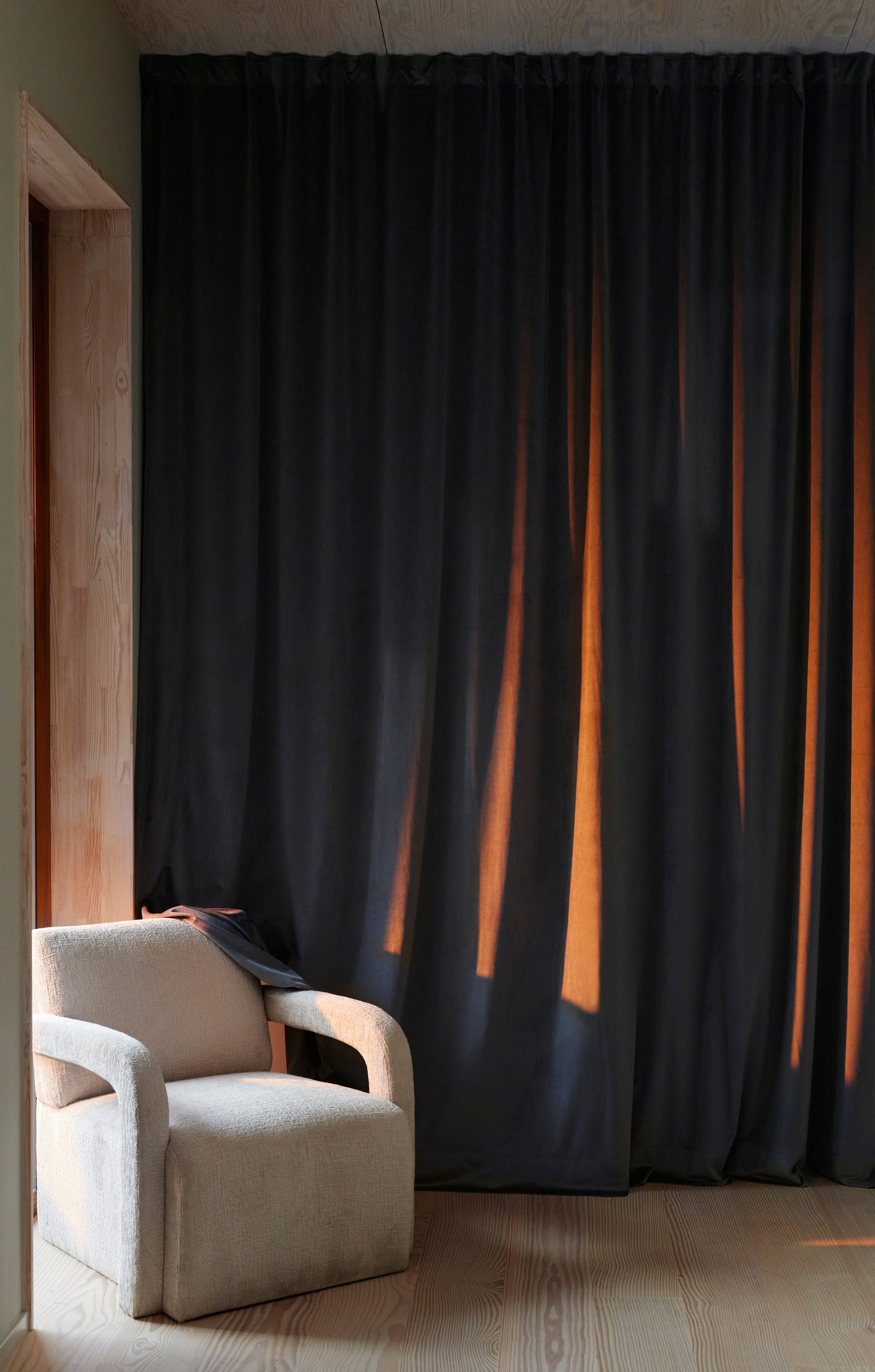 Gardinerne er syet og kantet i hånden i vores atelier i Borås. For at få et flot fald og en eksklusiv følelse i gardinet syr vi små lommer til vægte ind i bunden, og sømmen er også ekstra bred. Da hvert gardin er syet unikt til dig, kan disse gardiner have en længere leveringstid.