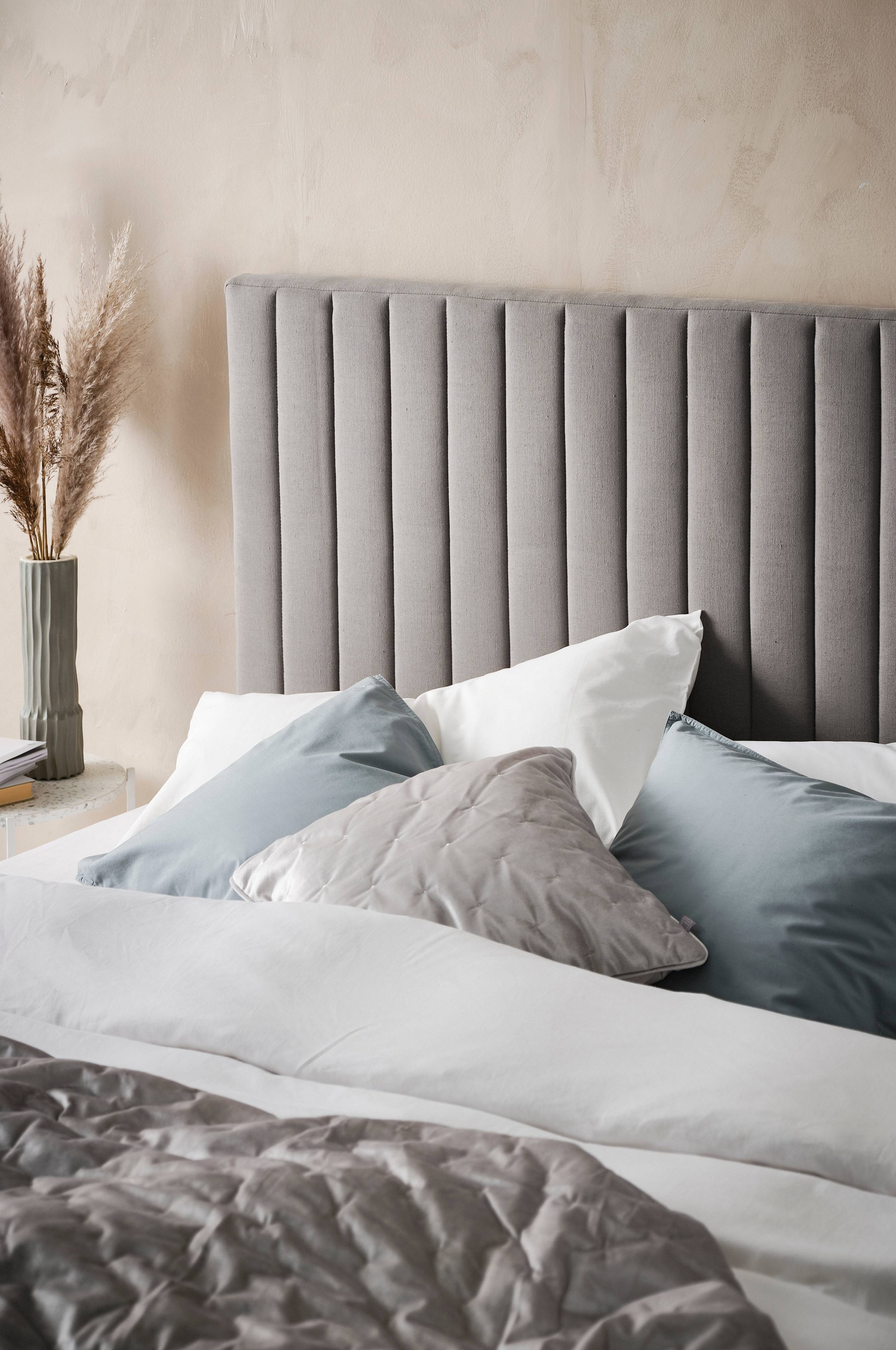 Forny dit soveværelse og skab et luksuriøst udtryk med DERBY, som er en fritstående blødt polstret sengegavl i blød hørblanding med lodrette quiltsømme. Vægbeslag medfølger.