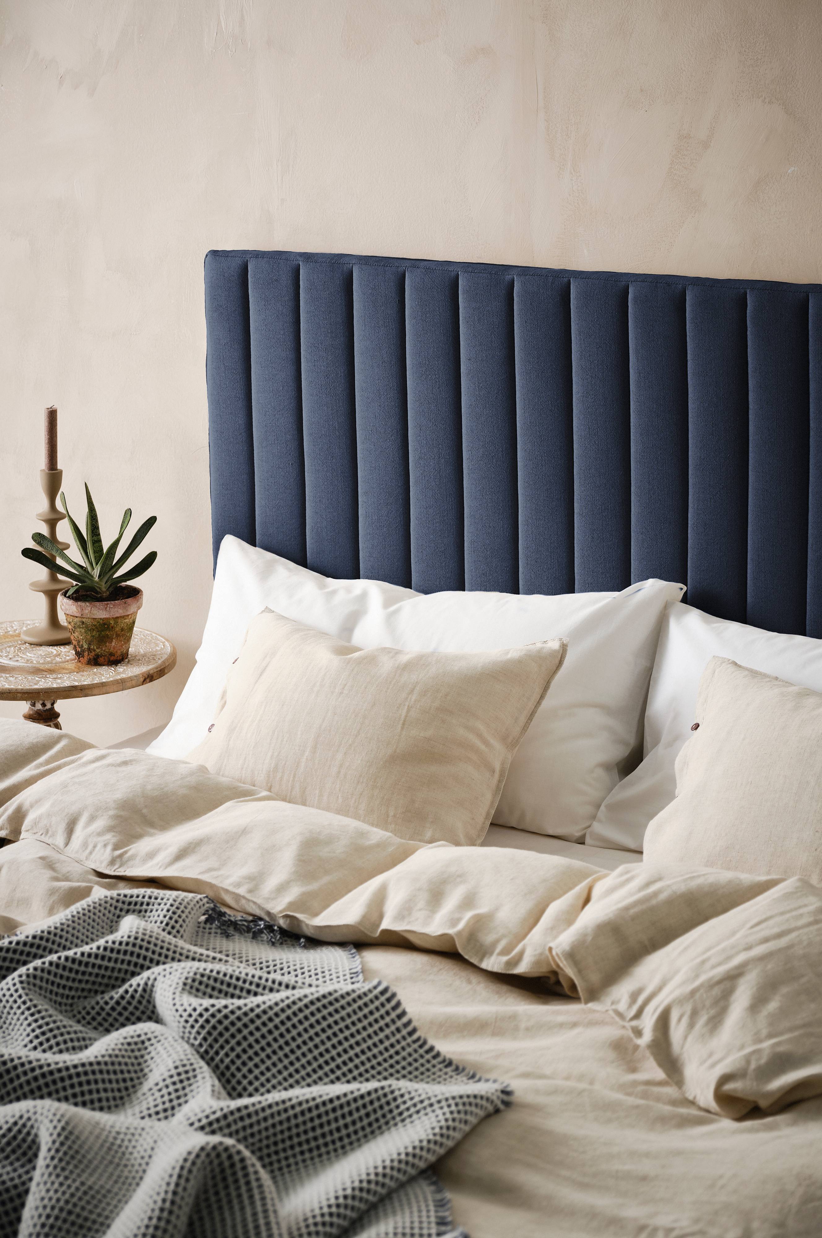 Forny dit soveværelse og skab et luksuriøst udtryk med DERBY, som er en fritstående blødt polstret sengegavl i blød hørblanding med lodrette quiltsømme. Vægbeslag medfølger.
