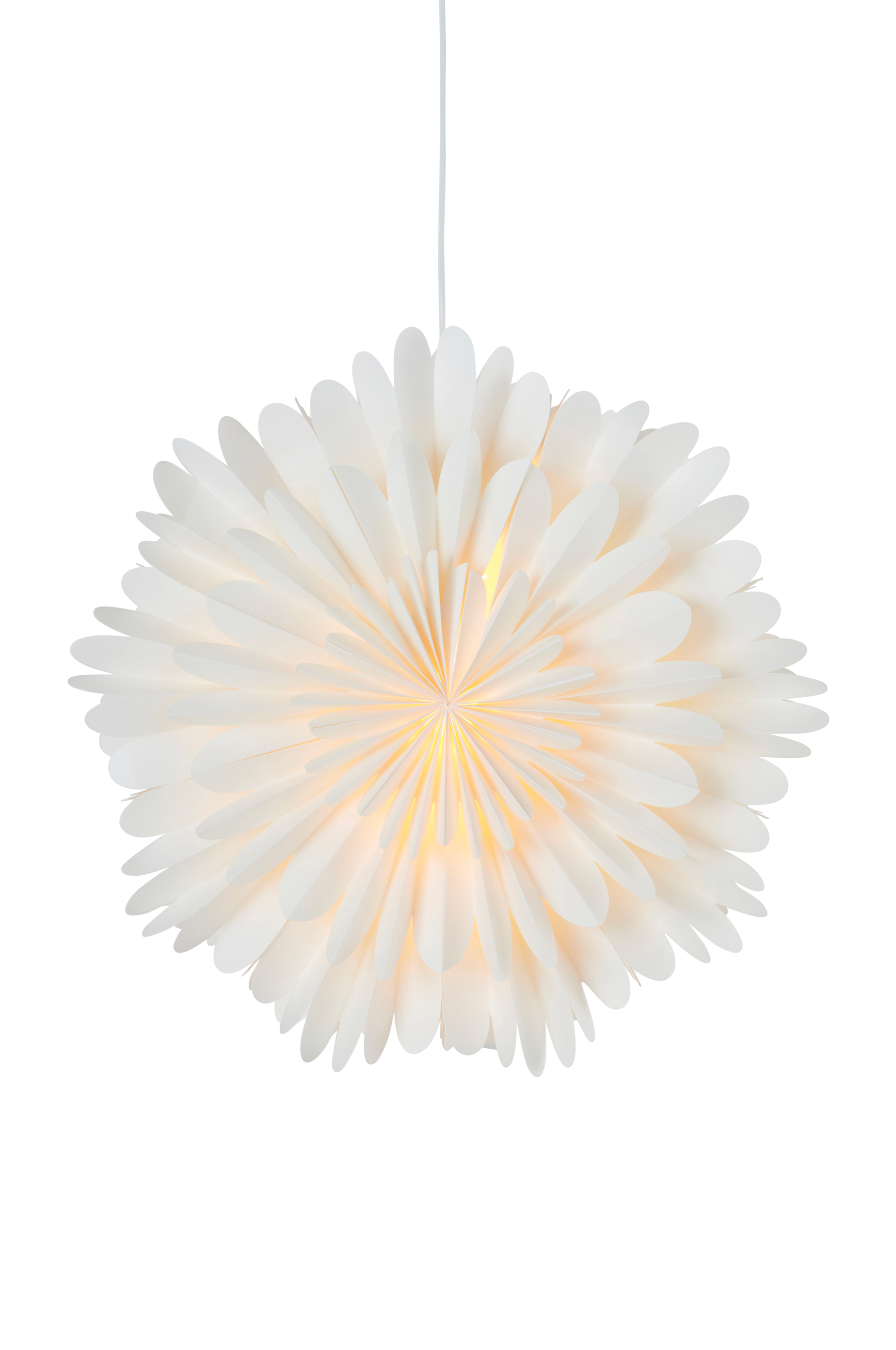 EIRA julestjerne forvandler din stue med et strejf af vintermagi. Denne udsøgte snefnug/blomst-formede stjerne kaster et fortryllende skær. Den er pakket i en robust hvid æske og leveres komplet med lampeholder, pærebeskytter og en letforståelig monteringsvejledning. Med en generøs diameter på 68 cm skaber EIRA-stjernen en festlig atmosfære, der betager og glæder. Den er perfekt til årstidsbestemt belysning og tilføjer et moderne, trendy touch til indretningen.