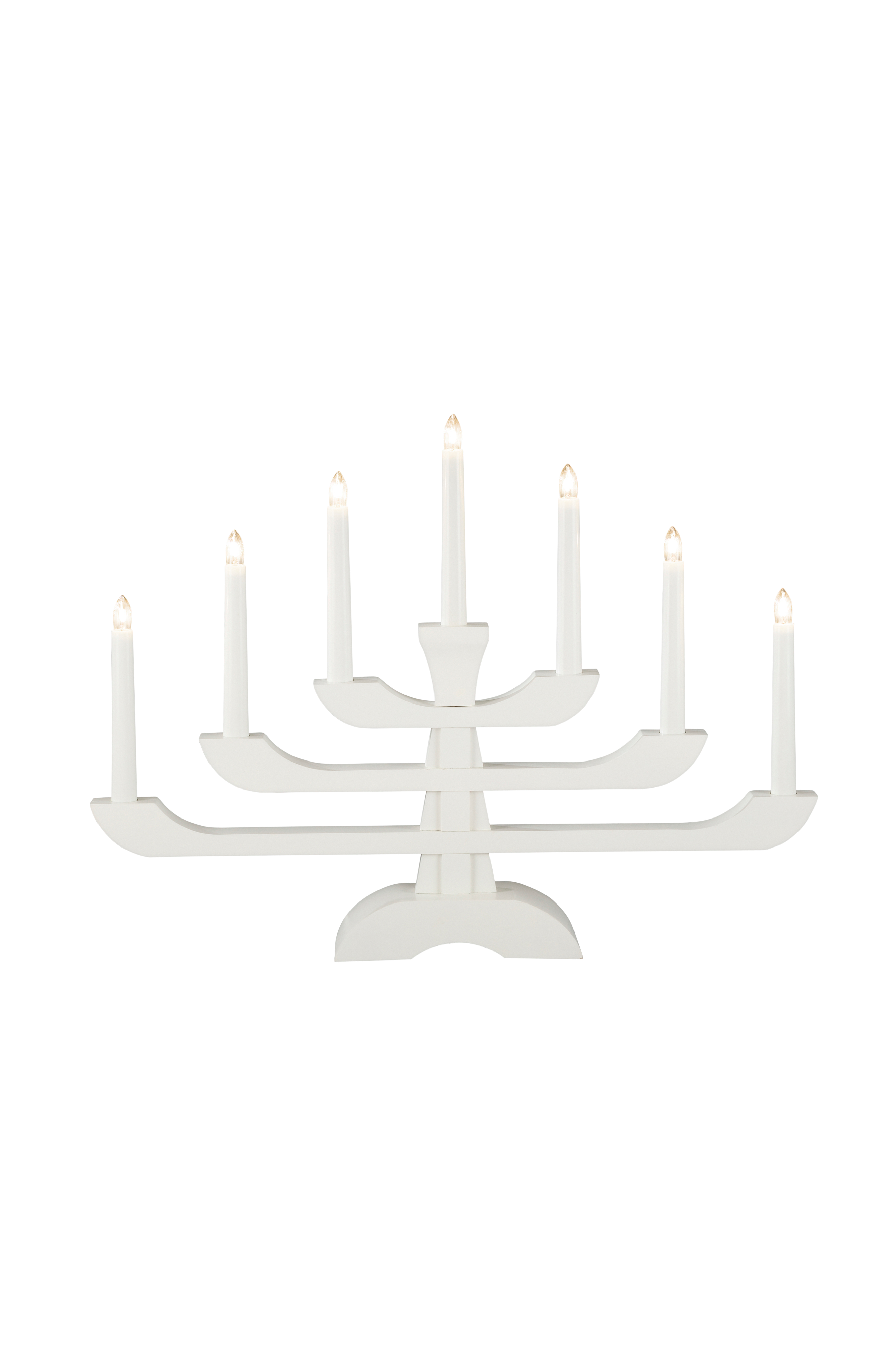 En 7-armet el-lysestage i olieret massiv eg, 230V. Varmt hvide pærer. Tilslutningsledning på 1,7 meter med afbryder på ledning for manuelt sluk/tænd. Højde 39 cm og bredde 53 cm.
