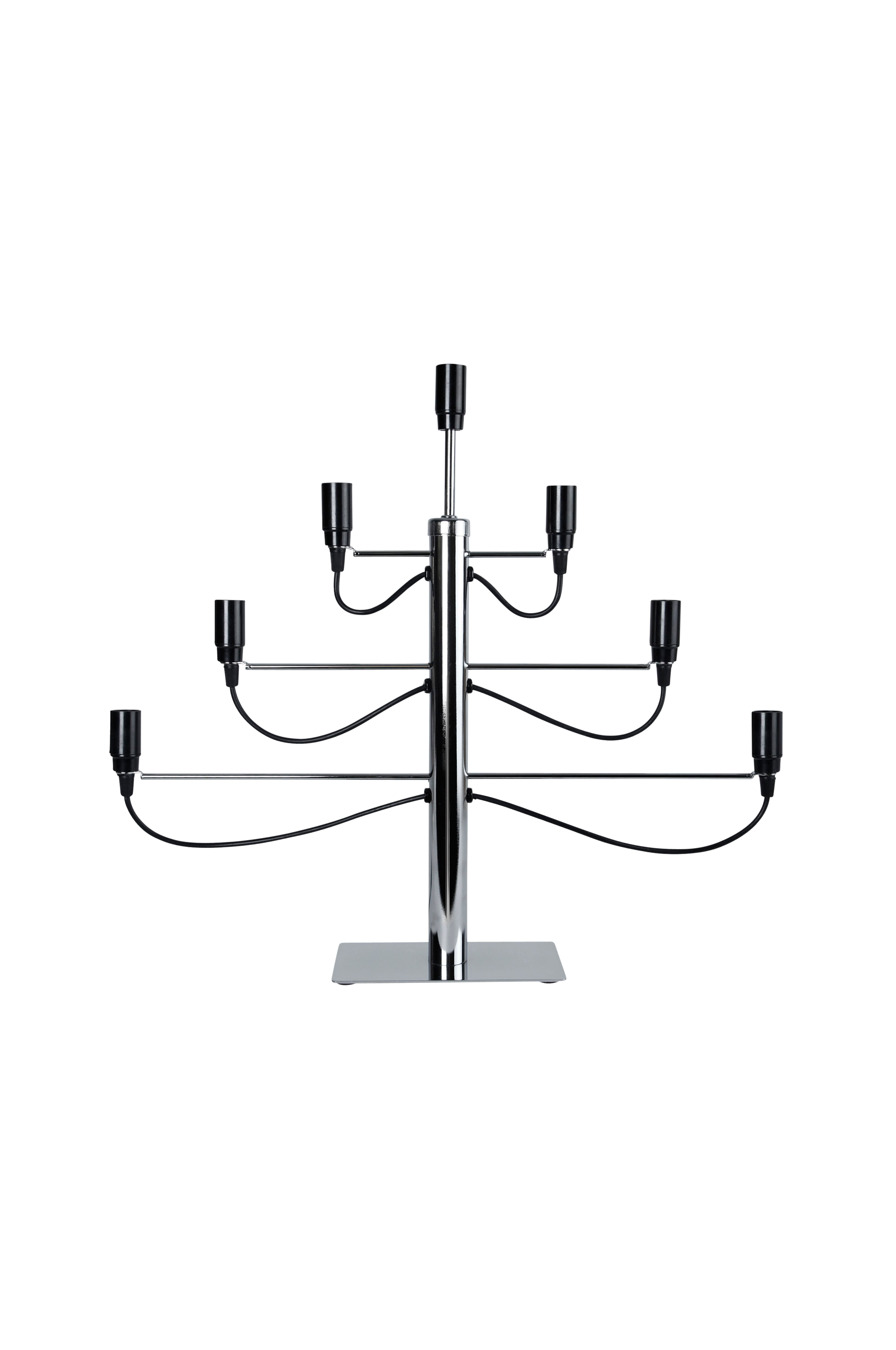 Trendy lysestage, Milano, med plads til 7 stk. E14 pærer. Højde 55 cm. Dybde 10 cm. Bredde 60 cm. Tilslutningskabel 1,8 m med afbryder. Lyskilder medfølger ikke.