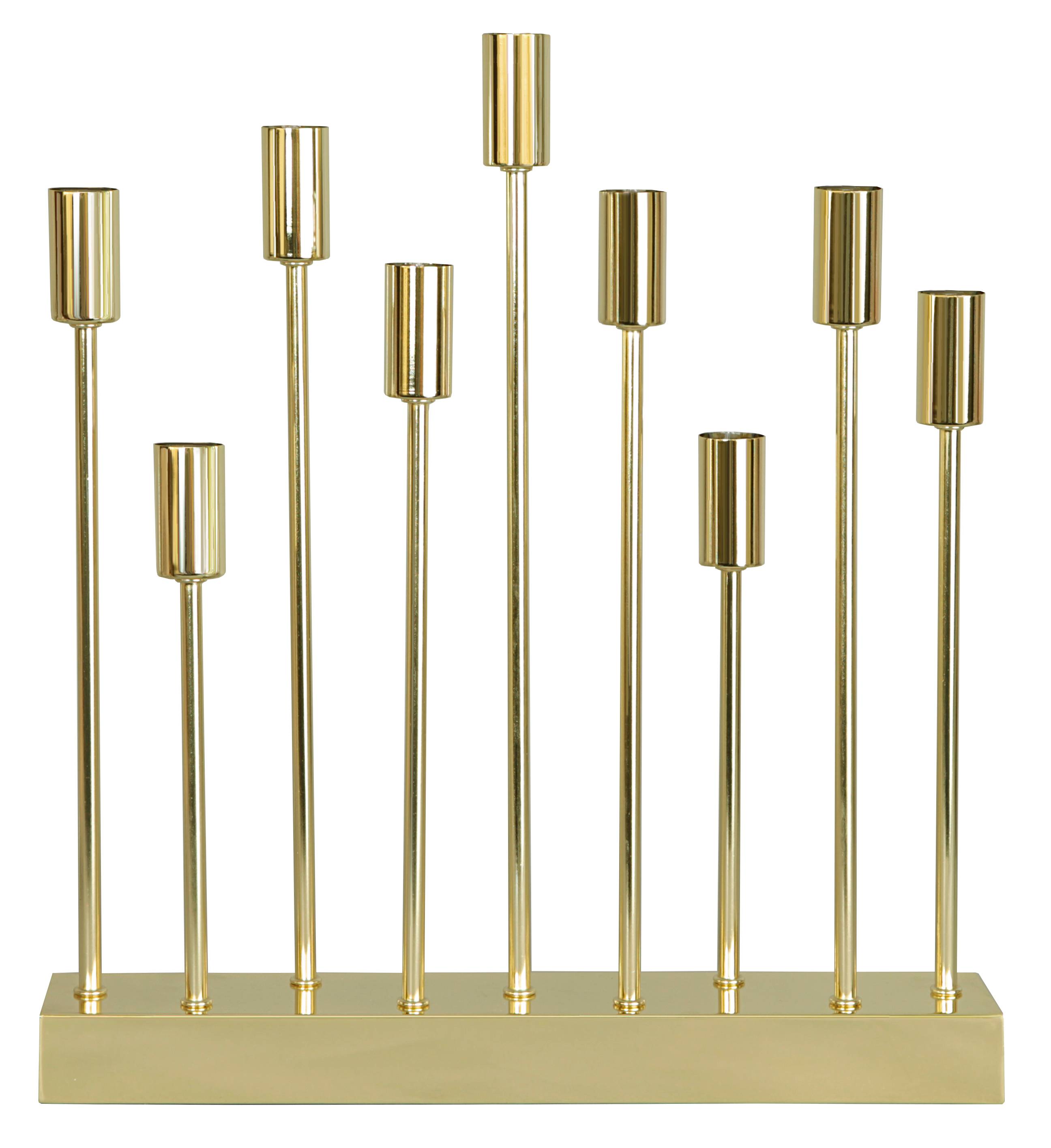 Trendy lysestage med plads til 9 stk. E14 pærer. Højde: 47,5 cm. Dybde 8 cm. Bredde 42 cm. Tilslutningskabel 1,8 m med afbryder. Lyskilder medfølger ikke.
