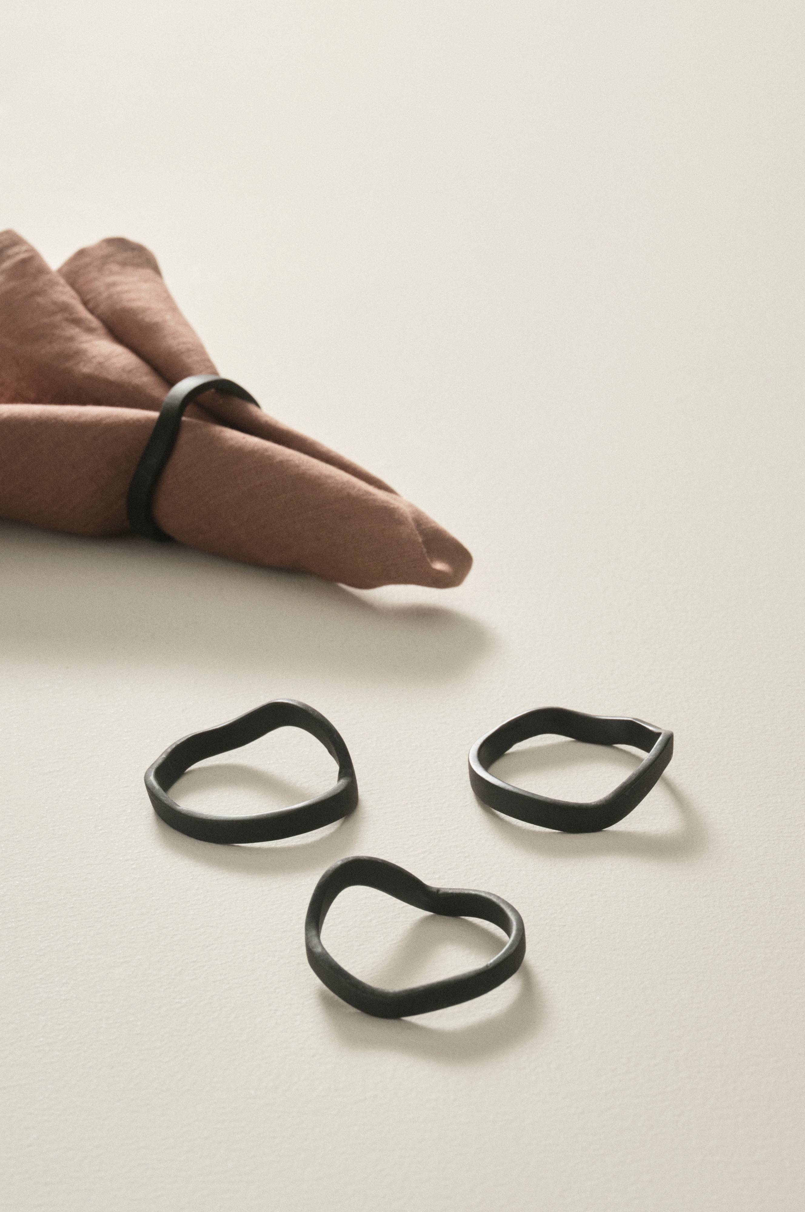 4-pak servietringe af aluminium, pulverlakeret. De organisk og uregelmæssigt formede ringe giver din opdækning med stofservietter et blødt udtryk.