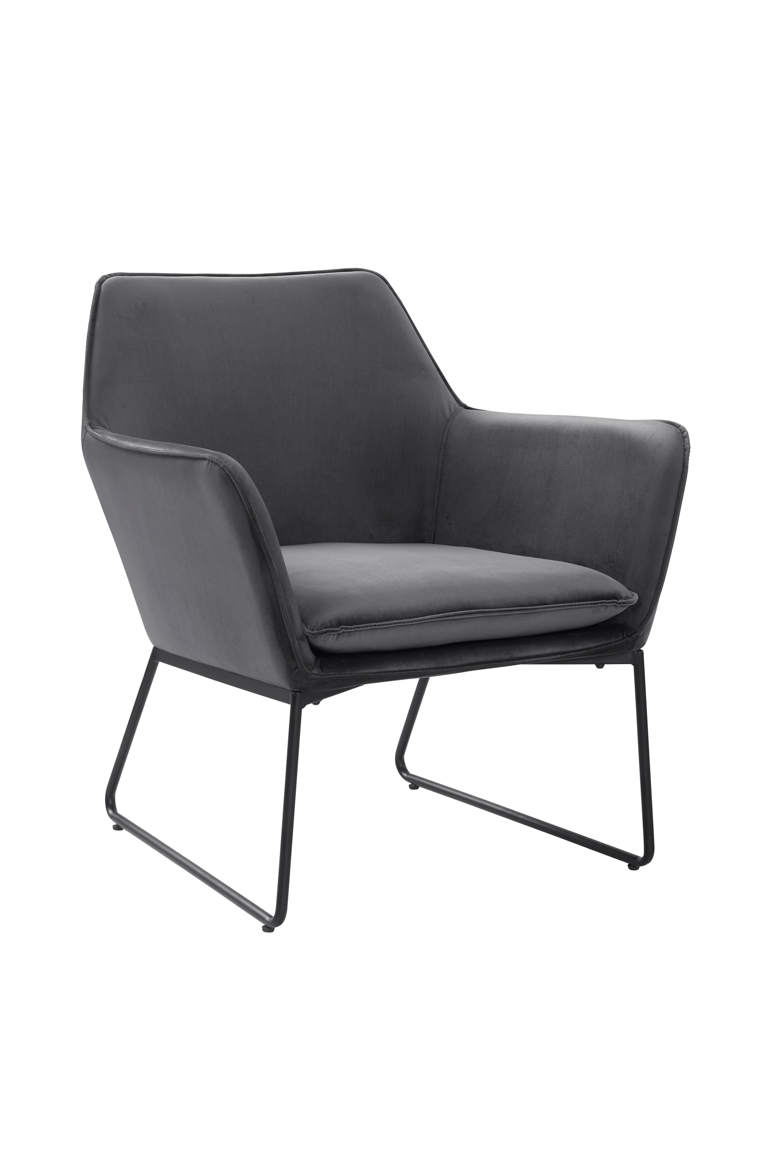 Ensfarvet lænestol med sæde i velour og metalben. Behagelig, karakterstærk og let er ord, der beskriver ELLNE. Lænestolen er bekvem takket være sin siddevinkel og de bløde hynder i velour. Nogen montering kræves. Samlevejledning medfølger.