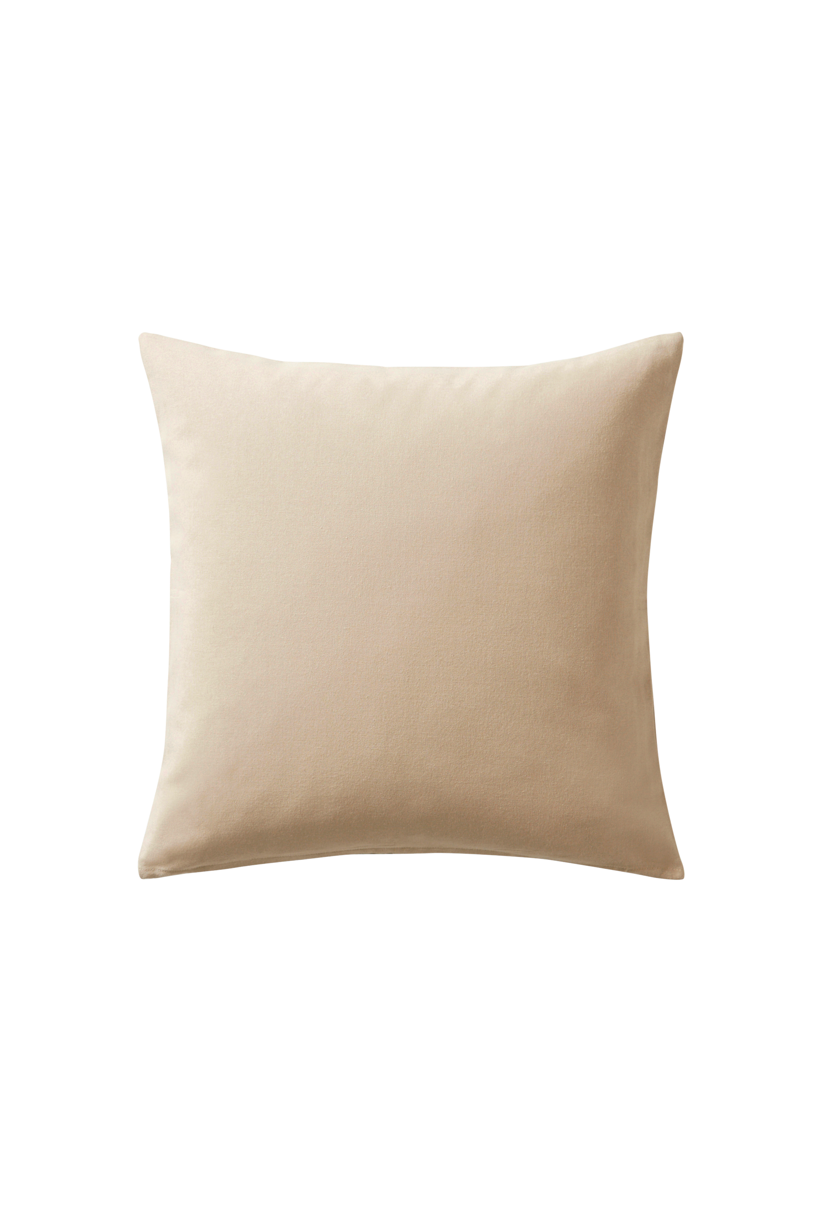 1-pak ensfarvede pudebetræk fremstillet af delvist genanvendt bomuld. Lynlås i bunden.