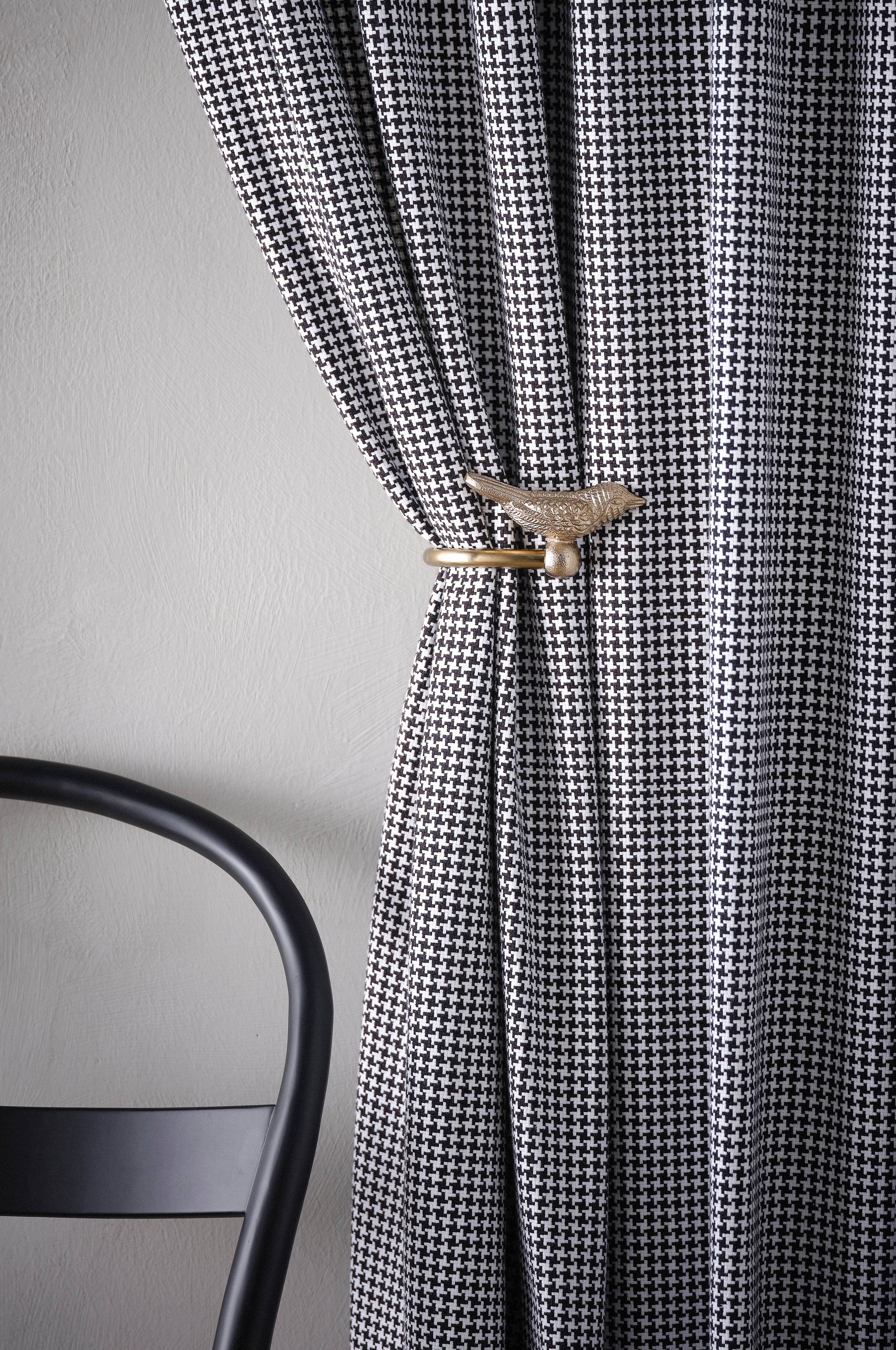 Fine, velforarbejdede fugle, som er en flot dekoration på gardinet. Med en gardinholder er det nemt at sætte gardinet pænt. Gardinerne hænger flot og får et fint fald.