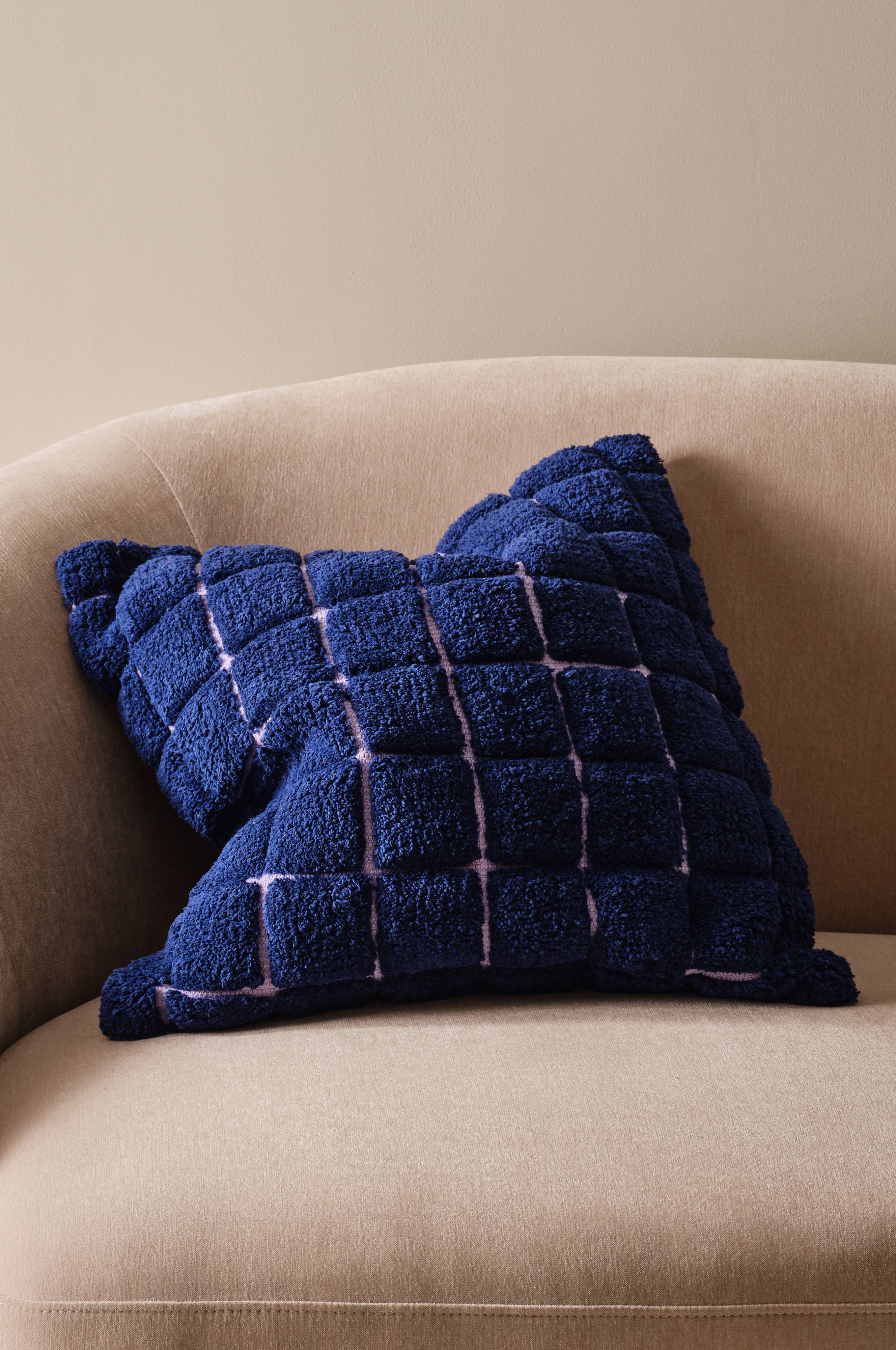 1-pak pudebetræk med tuftede firkanter på et lidt grovere vævet stof. Den bløde, korte luv skaber fin effekt. Bagsiden er et ensfarvet, vævet stof og den har skjult lynlås. Stoffets gramvægt er 440 g/m².