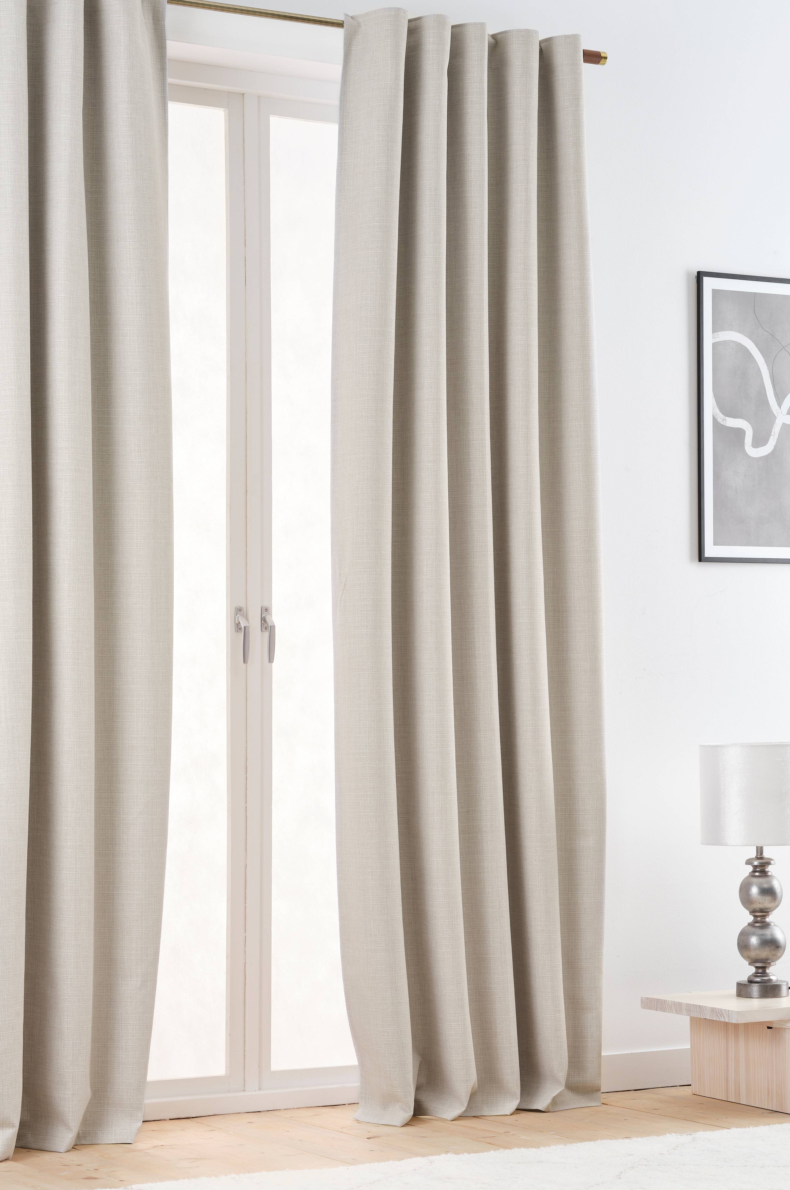 Høj kvalitet og mørkere gardin. Den beige farve matchede dog ikke billedet, men da jeg åbnede pakken, troede jeg, at jeg ved et uheld fik lysegrå gardiner...