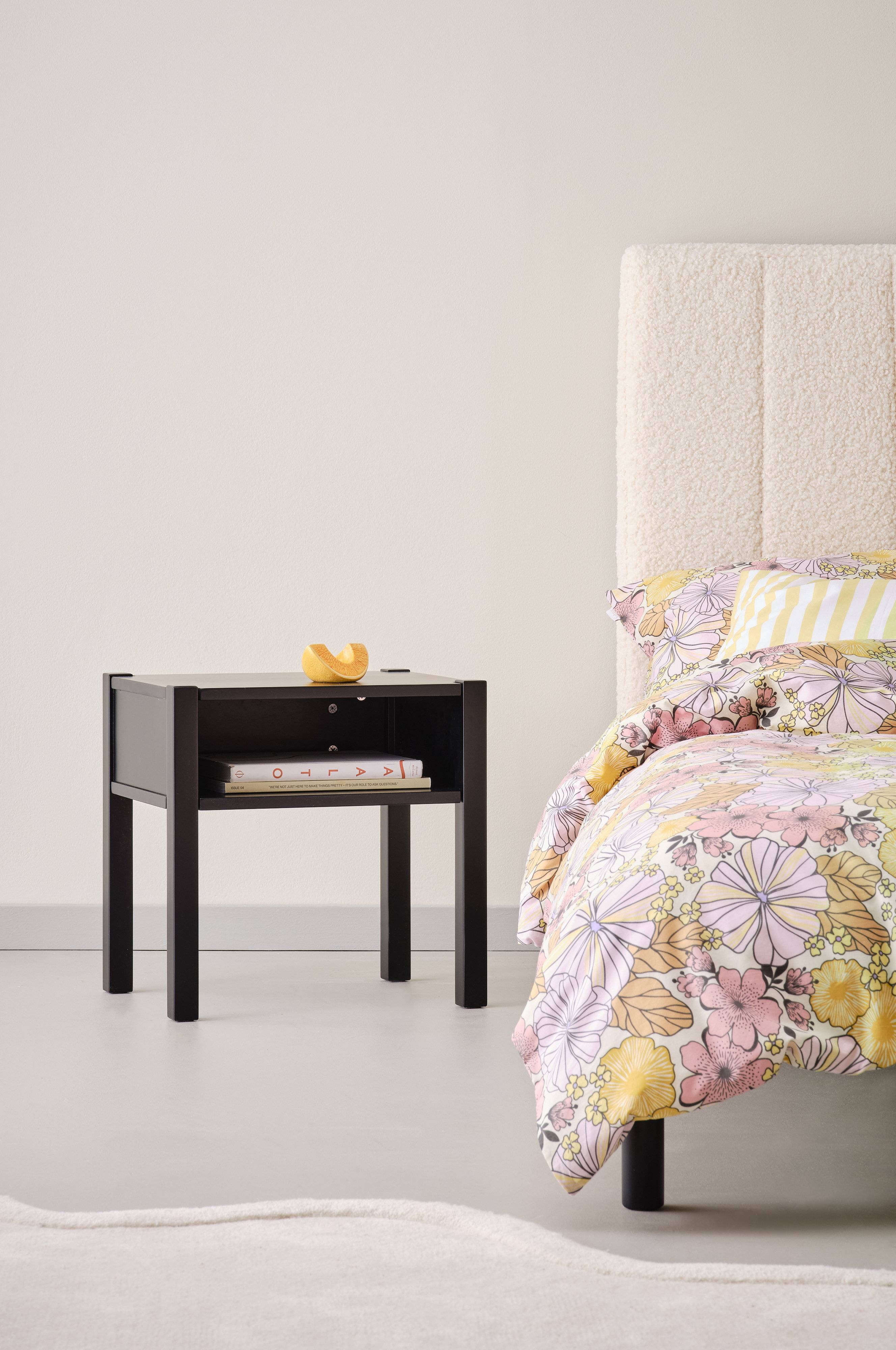 EVO-sengebordet indgyder naturlig charme til børneværelset. Bordet er fremstillet af FSC-certificeret fyrretræ. Sengebordet fås både malet og ubehandlet. Vores ubehandlede fyrretræsmaterialer får en smuk gul farve med tiden. For et personligt præg er det ubehandlede fyrretræ klar til, at du kan male og tilpasse det. Sengebordet har en praktisk designet åben hylde.