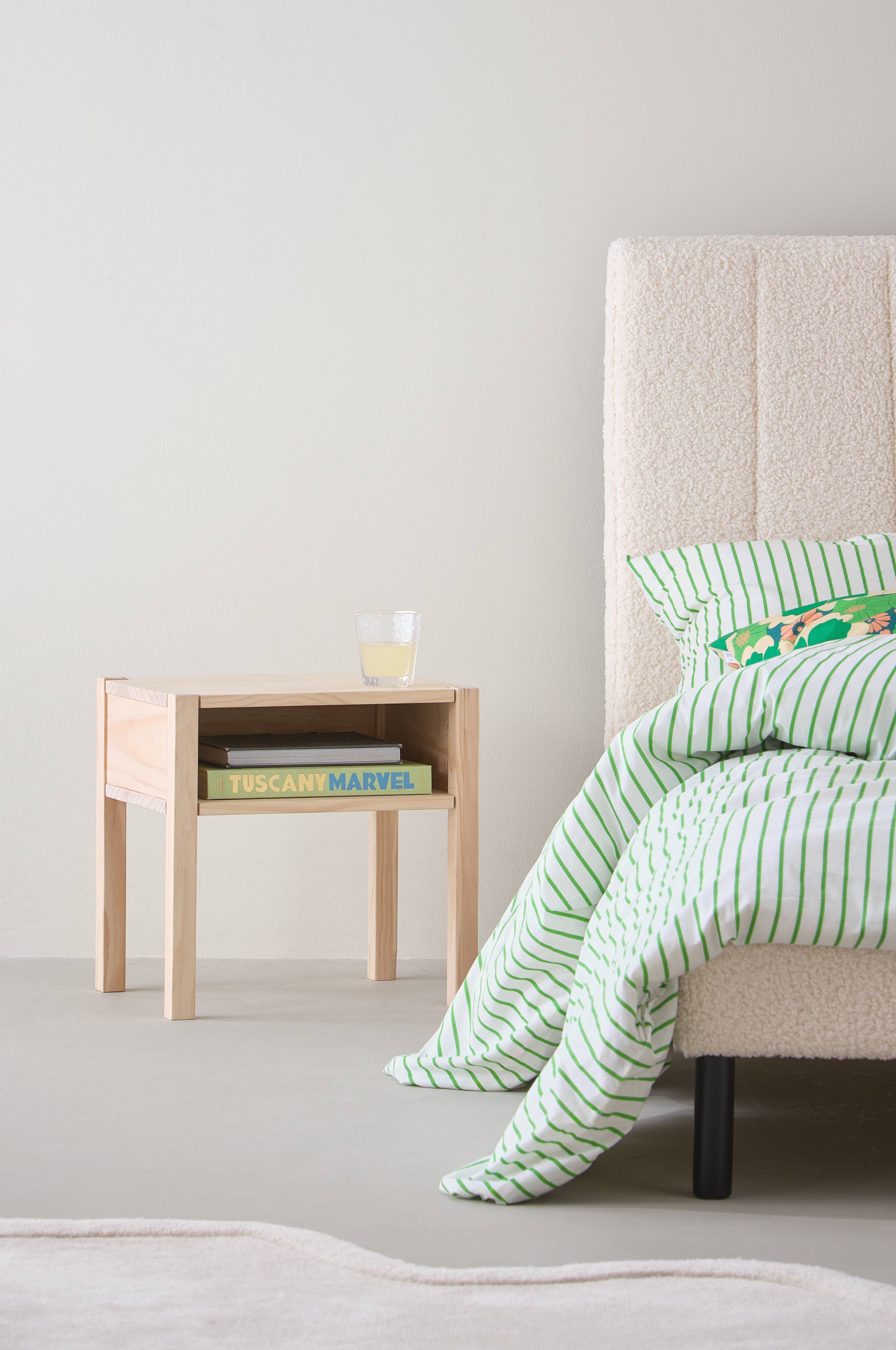 EVO-sengebordet indgyder naturlig charme til børneværelset. Bordet er fremstillet af FSC-certificeret fyrretræ. Sengebordet fås både malet og ubehandlet. Vores ubehandlede fyrretræsmaterialer får en smuk gul farve med tiden. For et personligt præg er det ubehandlede fyrretræ klar til, at du kan male og tilpasse det. Sengebordet har en praktisk designet åben hylde.