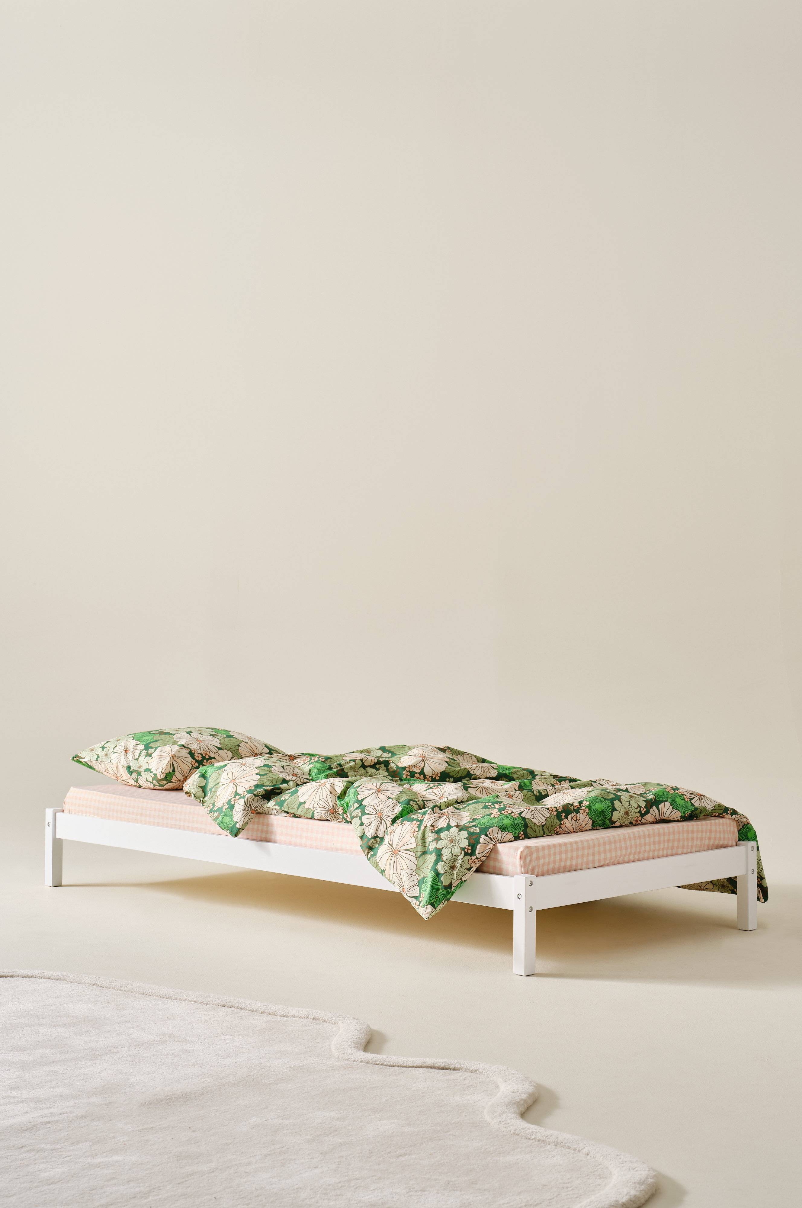 EVO-sengerammen indgyder naturlig charme i dit barns værelse. Sengen er fremstillet af FSC-certificeret massivt fyrretræ. Sengerammen fås både malet og ubehandlet. Ubehandlet fyrretræ får en gul nuance med tiden. For et personligt præg er det ubehandlede fyrretræ klar til, at du kan male og tilpasse det.
