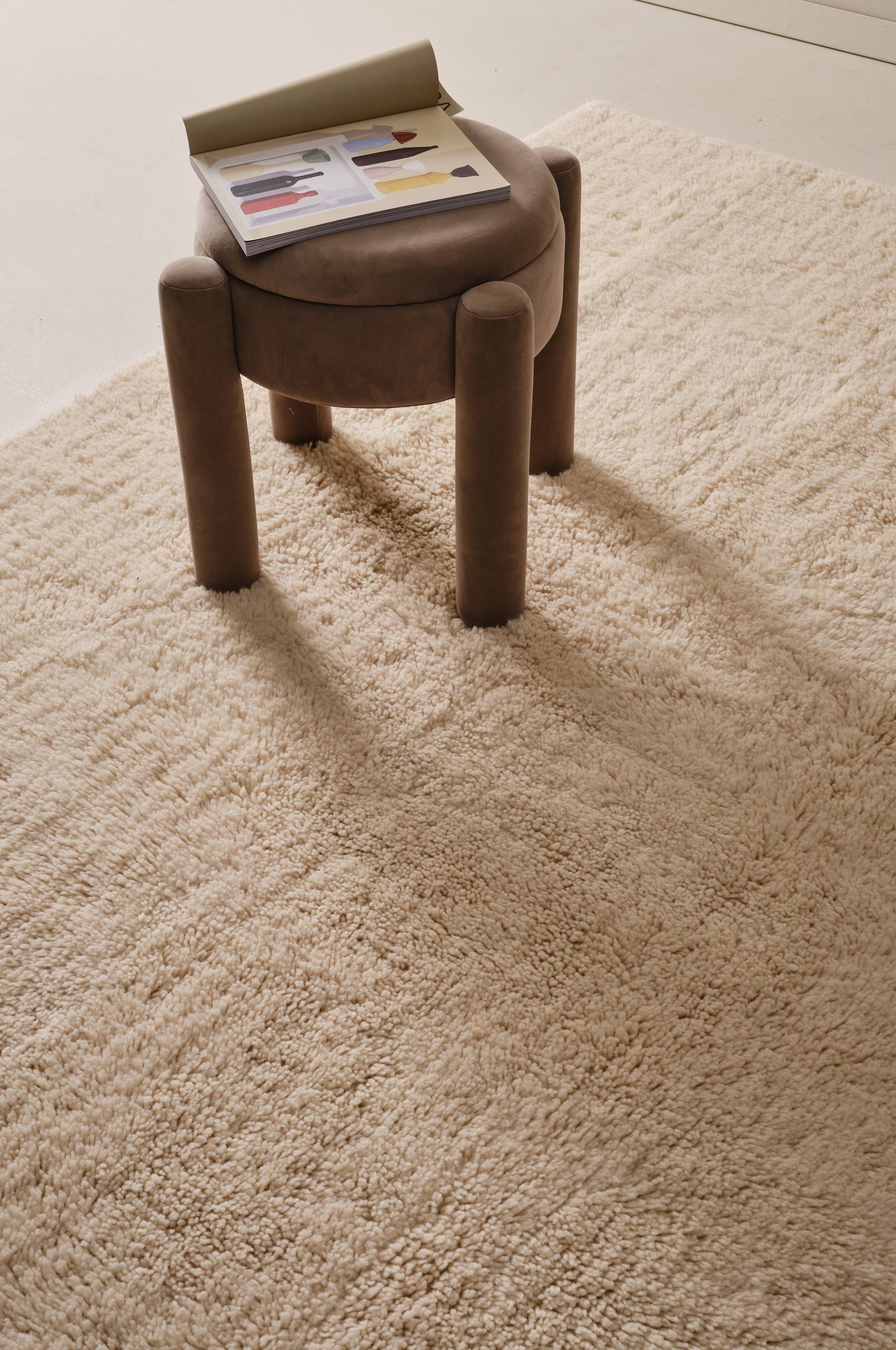Tuftet uldtæppe med iblandet bomuld. Tæppet er stort med tyk og tæt luv som gør det blødt og skønt. Uld er naturligt varmende og EZBET er i en smidig kvalitet. Luvhøjde 3 cm. Tykkelse 3,1 cm. 1800 g/m².