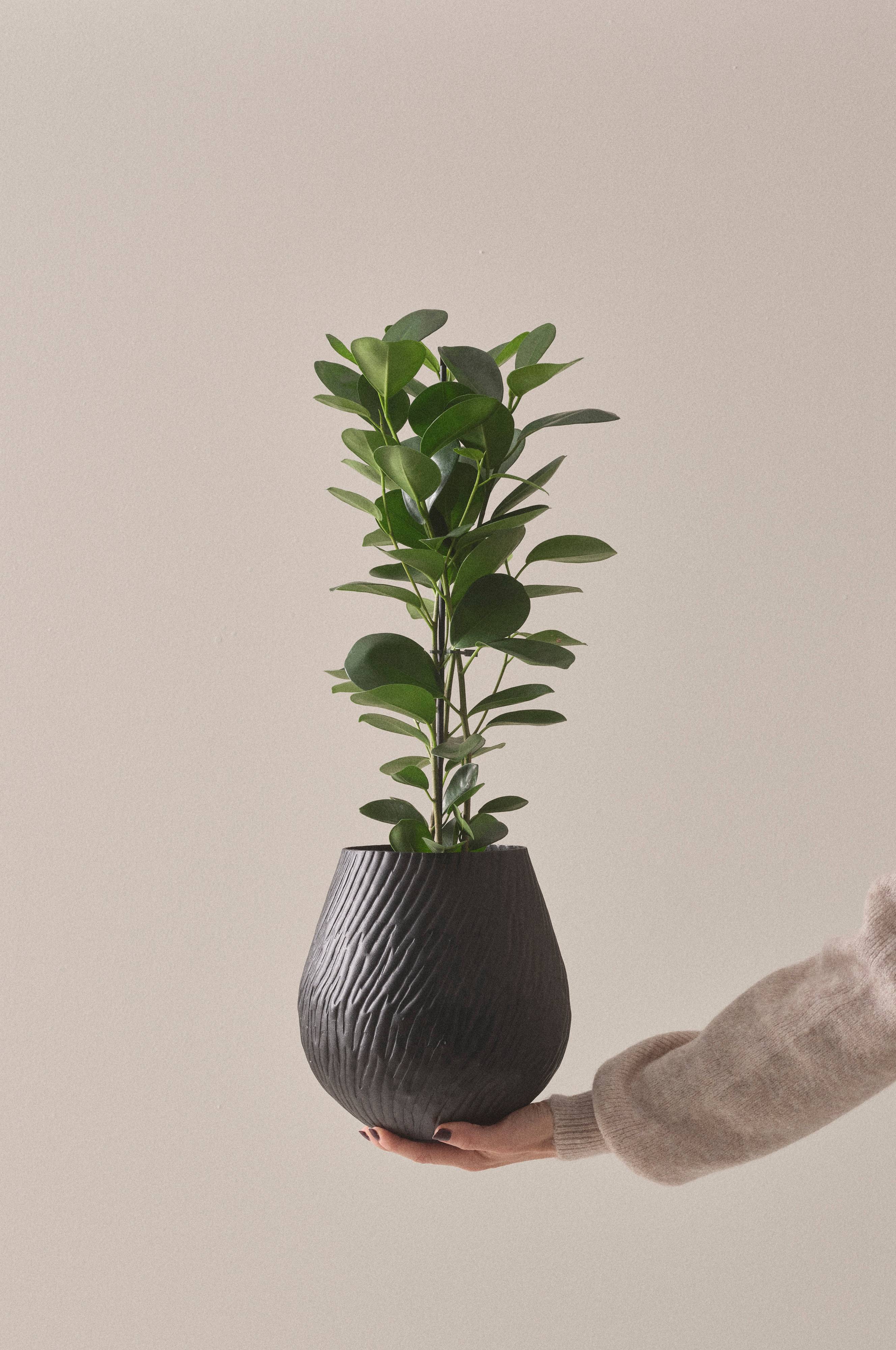 Ficus microcarpa Moclame, som også kaldes citronfigen, er en plante med mellemstore, blanke, mørkegrønne blade som ligner citrontræets, deraf navnet. Citronfigen trives i lys, men undgå brændende sol i sydvendte vinduer om sommeren, der fungerer halvskygge perfekt. Ficus microcarpa Moclame kan efter ønske klippes som et bonsaitræ og er en meget nemmere plante at holde end en bonsai. Ved leveing har den en potte i plast.