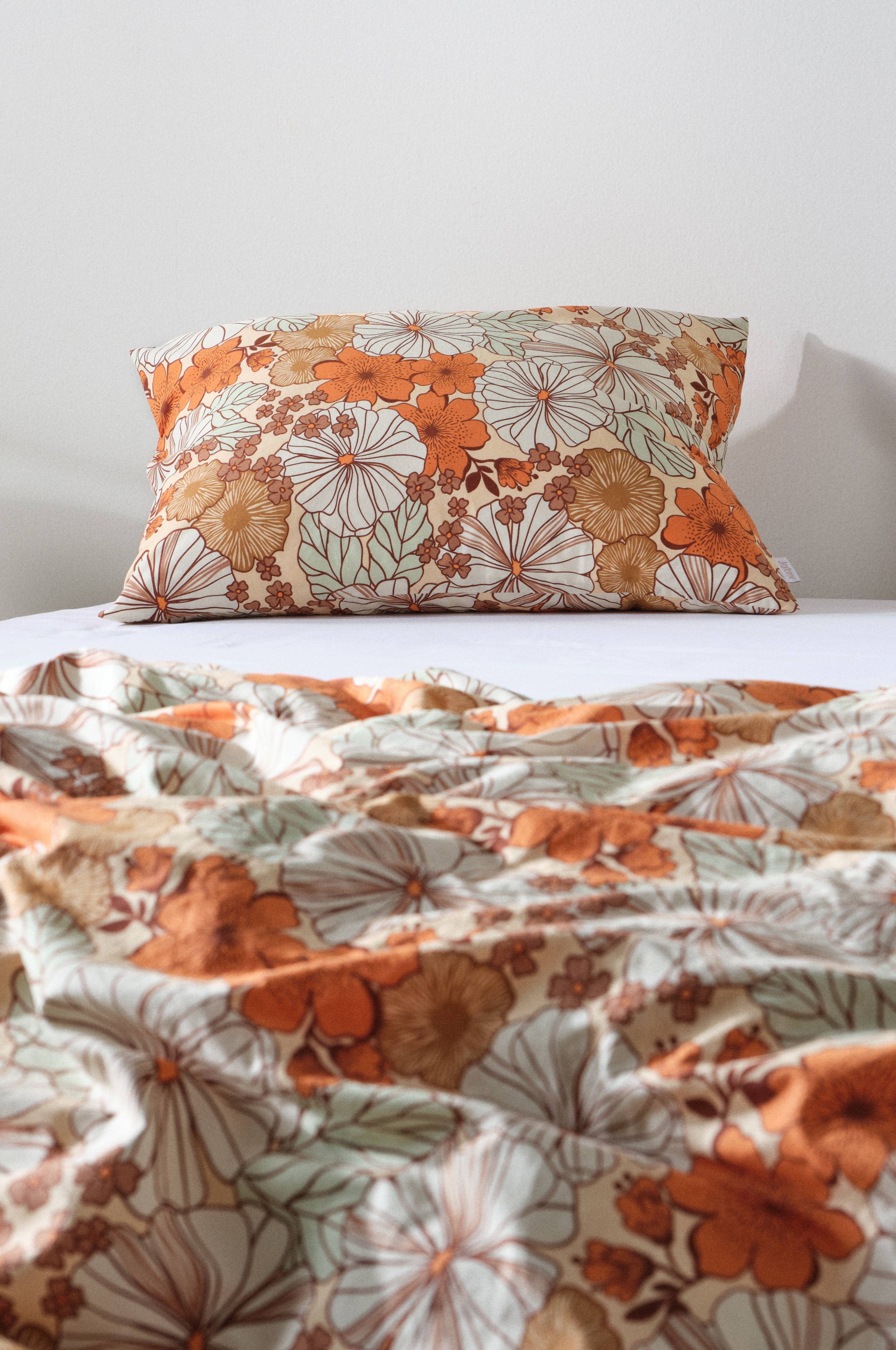 1-pak pudebetræk i fintrådig, tætvævet bomuldskvalitet. Stoffet har et dejligt blomstermønster trykt i en flot farveskala. Det er også enzymvasket, hvilket giver det en behagelig blødhed og en let slidt fornemmelse.