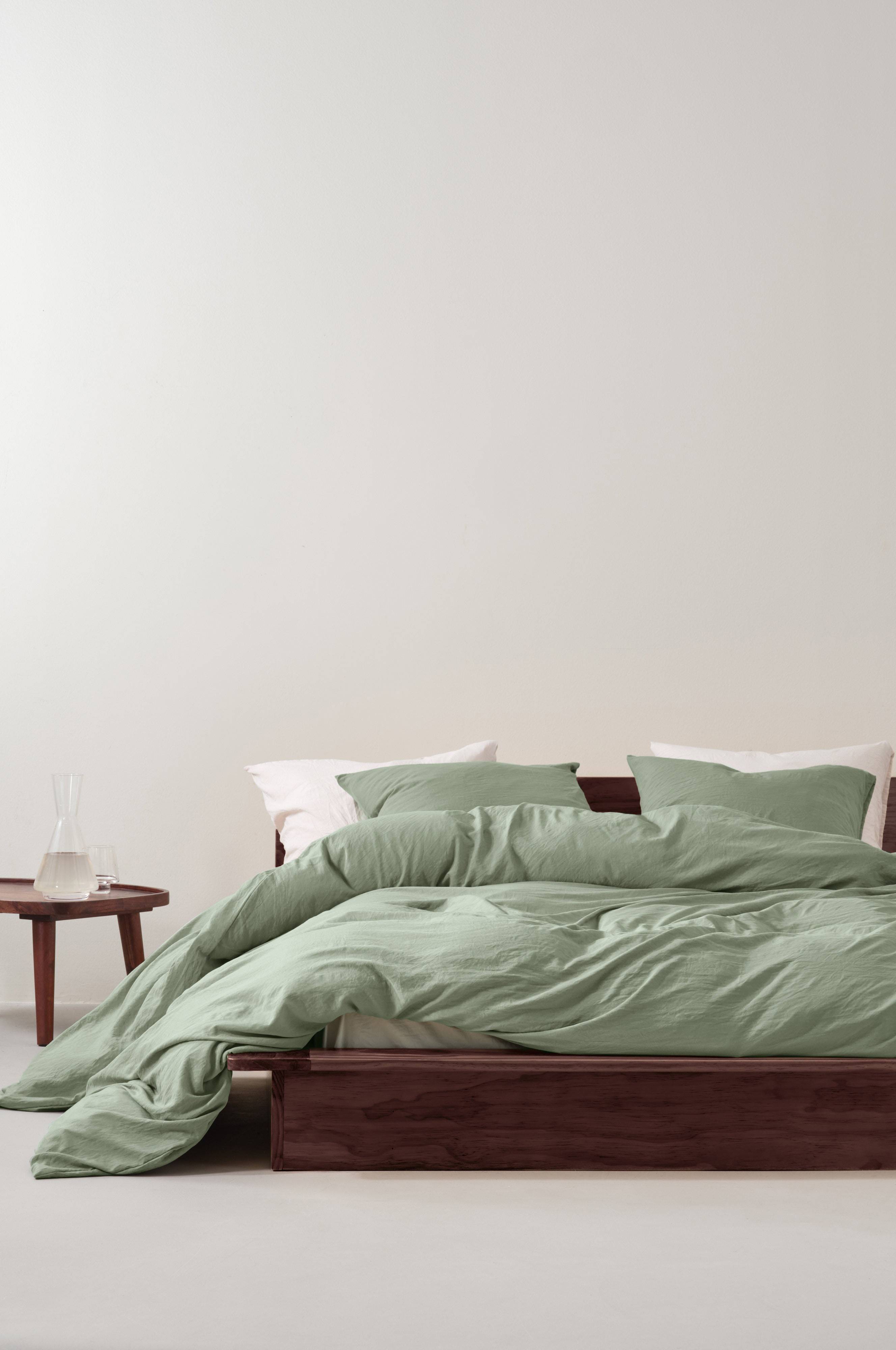 Tredelt dynebetræk, et ekstra bredt dynebetræk og to pudebetræk, i superblød, vasket kvalitet. Stoffet er en polyestermikrofiber, som er let og hurtigtørrende.