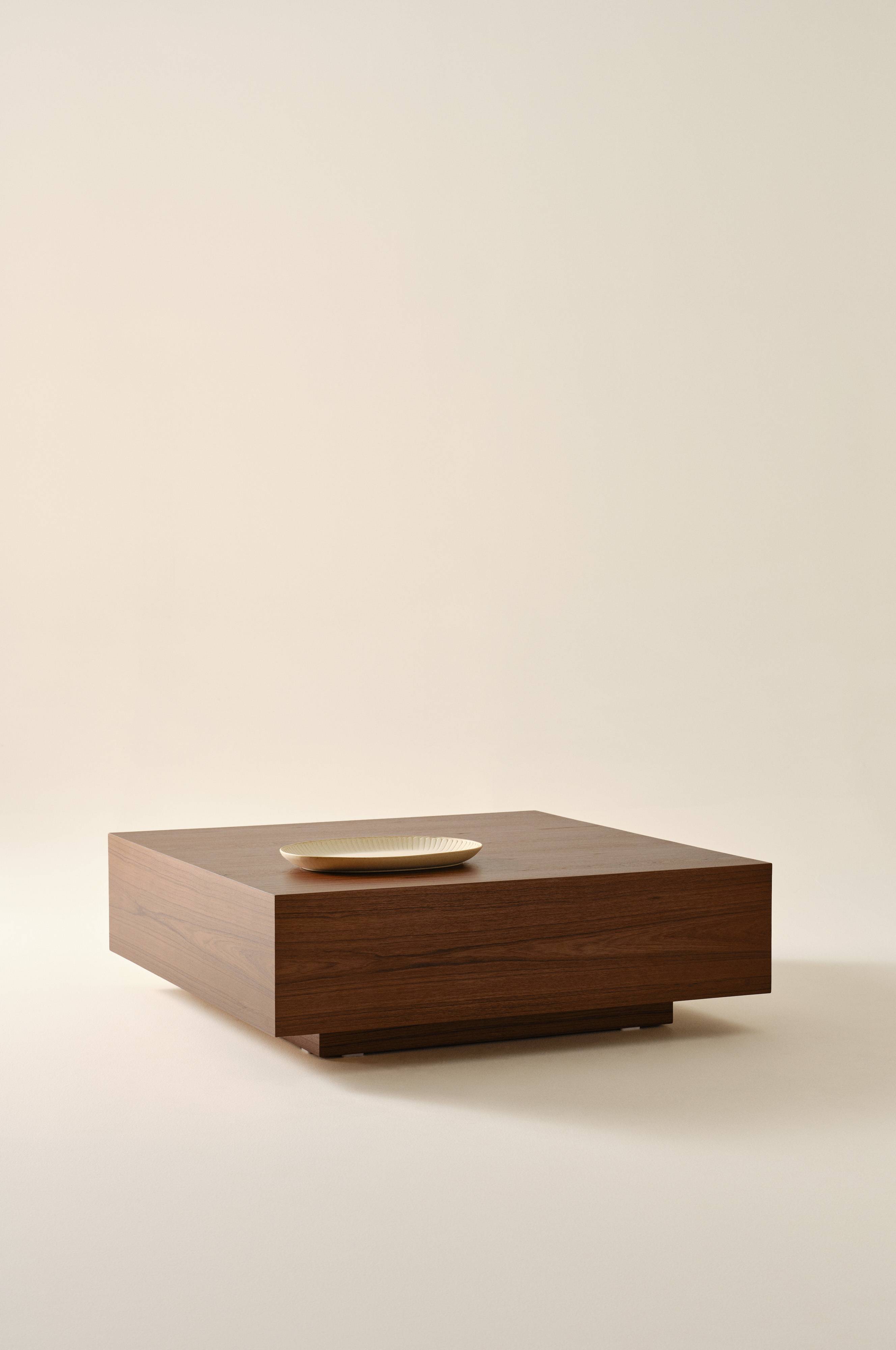 Sofabordet FLOAT er fremstillet af MDF med teakfinér og malet finish. Bordet er lavt og har en forsænket, lav base, der giver en fornemmelse af, at bordet flyder eller svæver, som navnet antyder. Bordet giver rummet en hyggelig følelse.