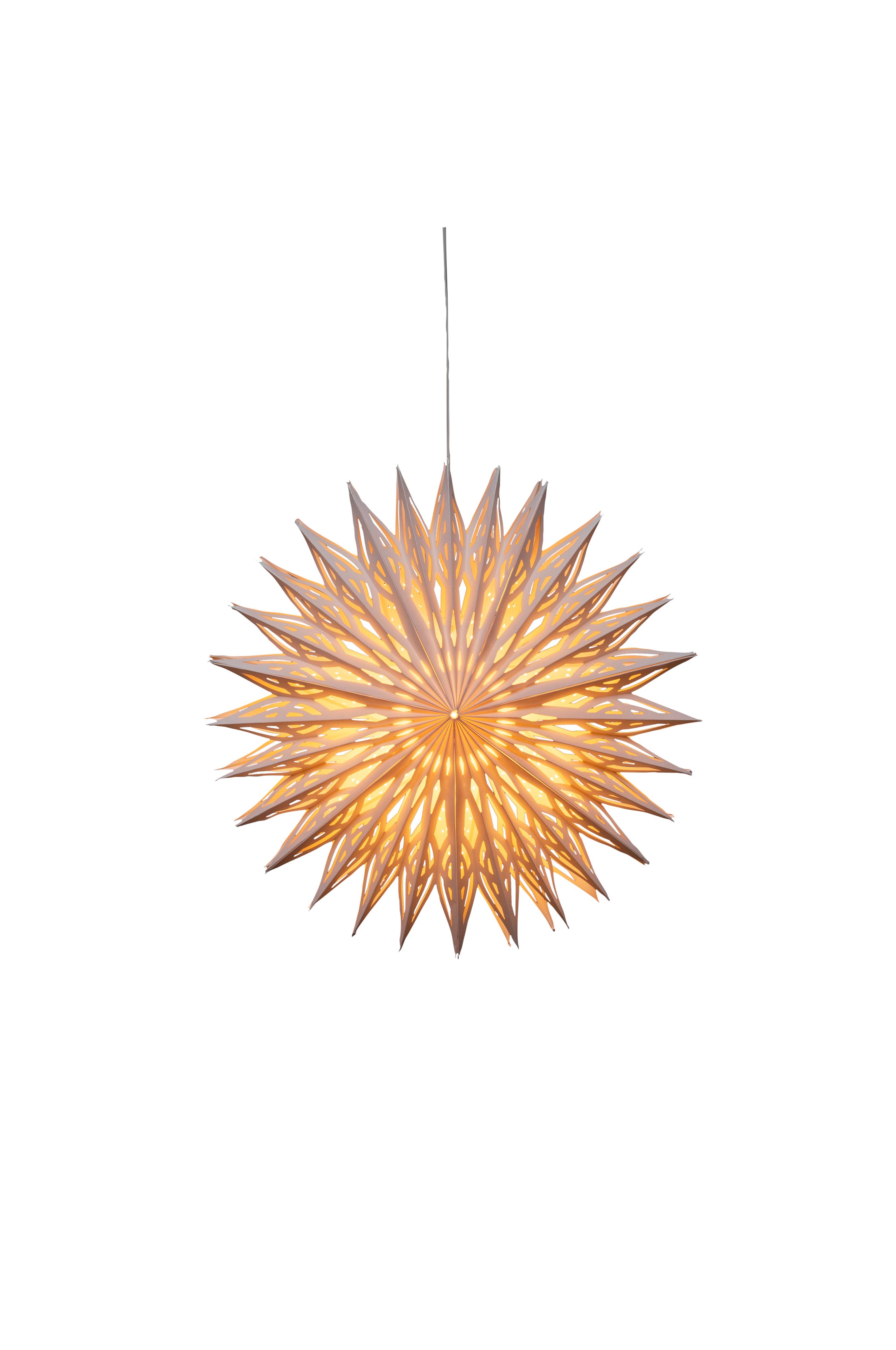 Papercraft-belysningsstjerne smukt formet som en blomst. Inkluderer et praktisk stativ med 5 meter ledning til nem placering. Ideel til advents- og juledekoration, perfekt til at hænge i vinduer eller op ad vægge, hvilket giver varme og charme til alle omgivelser.