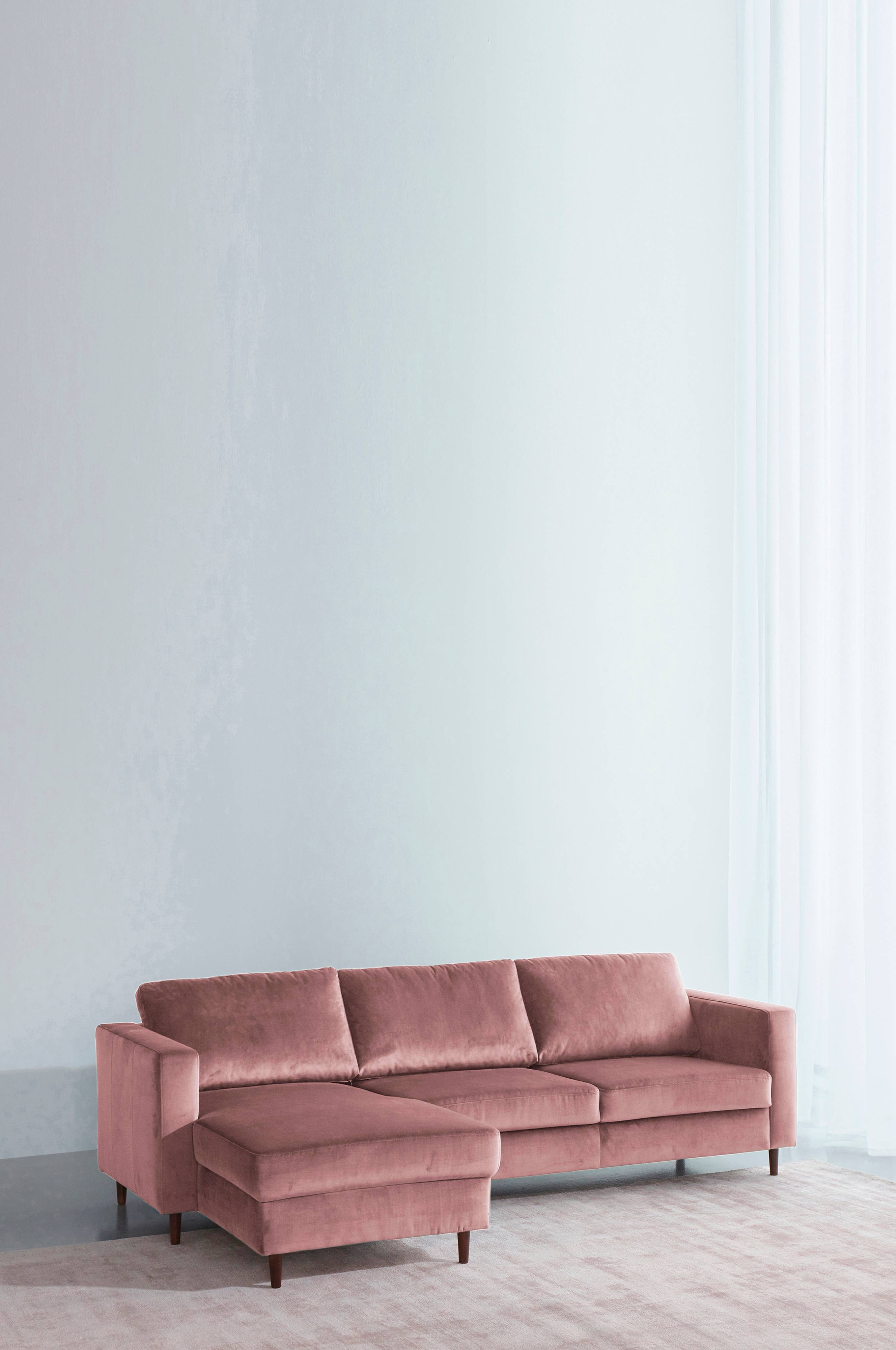 FRANCIS sofa 3-pers. chaiselong er en spændende sofa, hvor enkeltheden og det rene design giver et skandinavisk udtryk. Chaiselongen kan monteres på højre eller venstre side. FRANCIS 3-pers. sofa har et slidstærkt velourstof af polyester og benene er i træ. Glatte puder i ryglænet og et stabilt skelet af fyrretræ og plywood med god siddekomfort takket være den fantastiske opbygning af koldskum, zigzag-affjedring, elastikbånd og skøn polyesterpolstring.