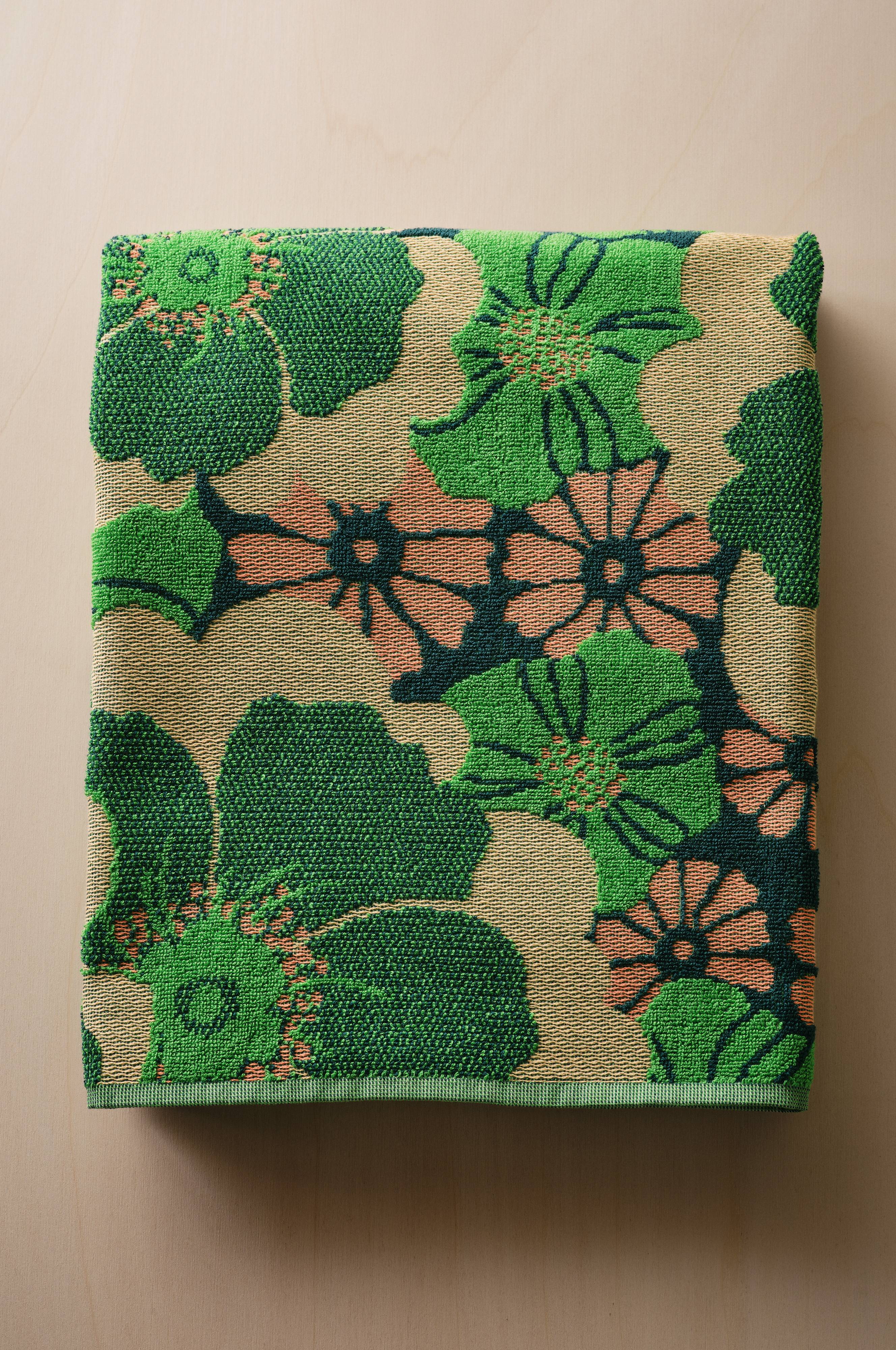 FRIDA-badehåndklædet kombinerer ubesværet retrocharme med moderne flair med et livligt blomsterprint designet af Maria Carlberg. Dette vidunder af bomuld er fremstillet i frotté og giver komfort og luksus efter hvert bad. FRIDA-håndklædet er perfekt til trendsættere, der ønsker en iøjnefaldende tilføjelse til deres interiør, og det lover at være både praktisk og stilfuldt i dit hjem.