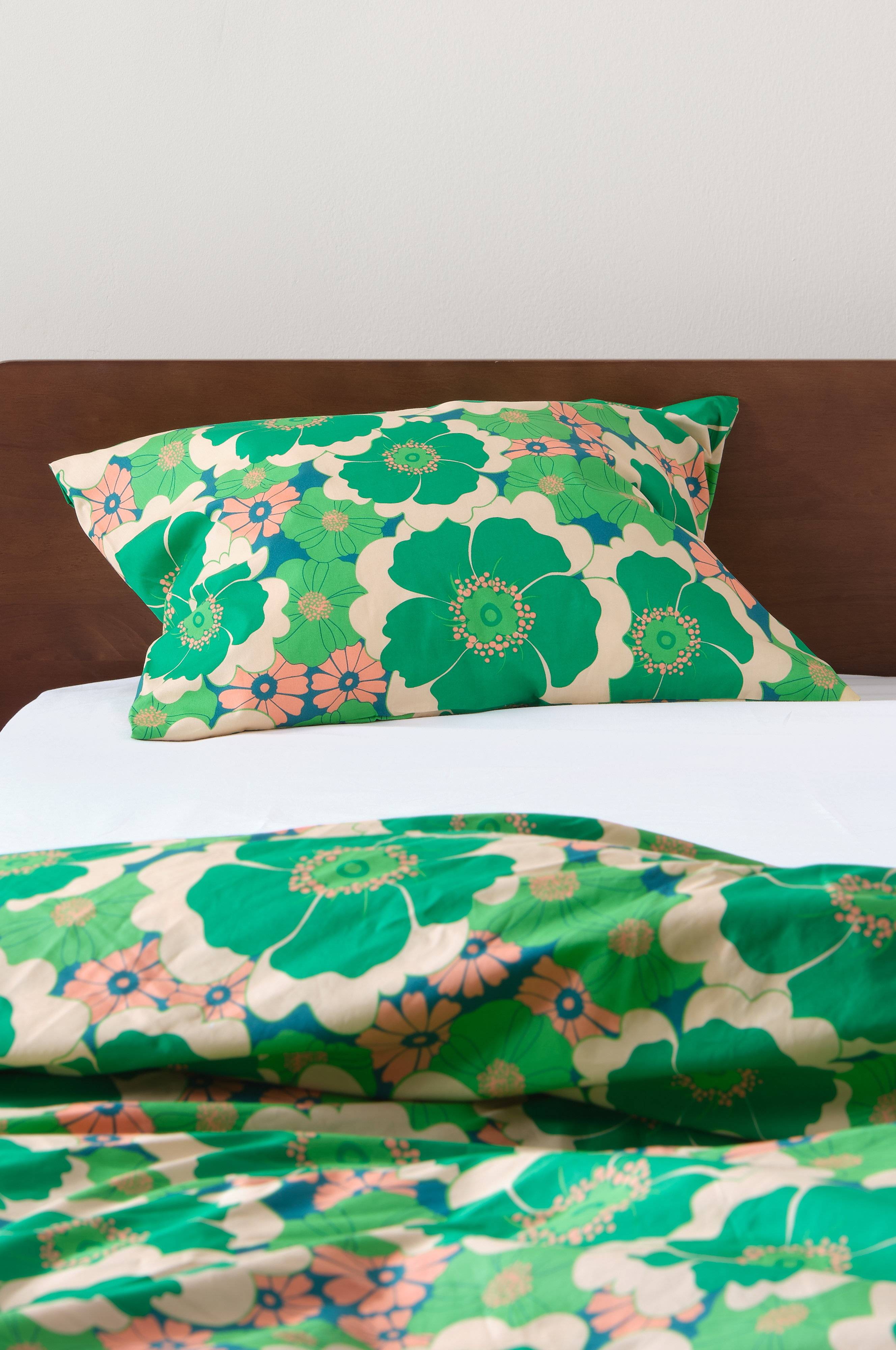 Pudebetræk med et retro blomstermønster designet af Maria Carlberg giver et strejf af vintagecharme til ethvert interiør. FRIDA er fremstillet af økologisk bomuldspercale og giver komfort, samtidig med at det er stilfuldt. Det pigmentprintede design giver et levende udtryk, som gør det til en dejlig tilføjelse til moderne eller retroinspireret indretning. Perfekt til designentusiaster!