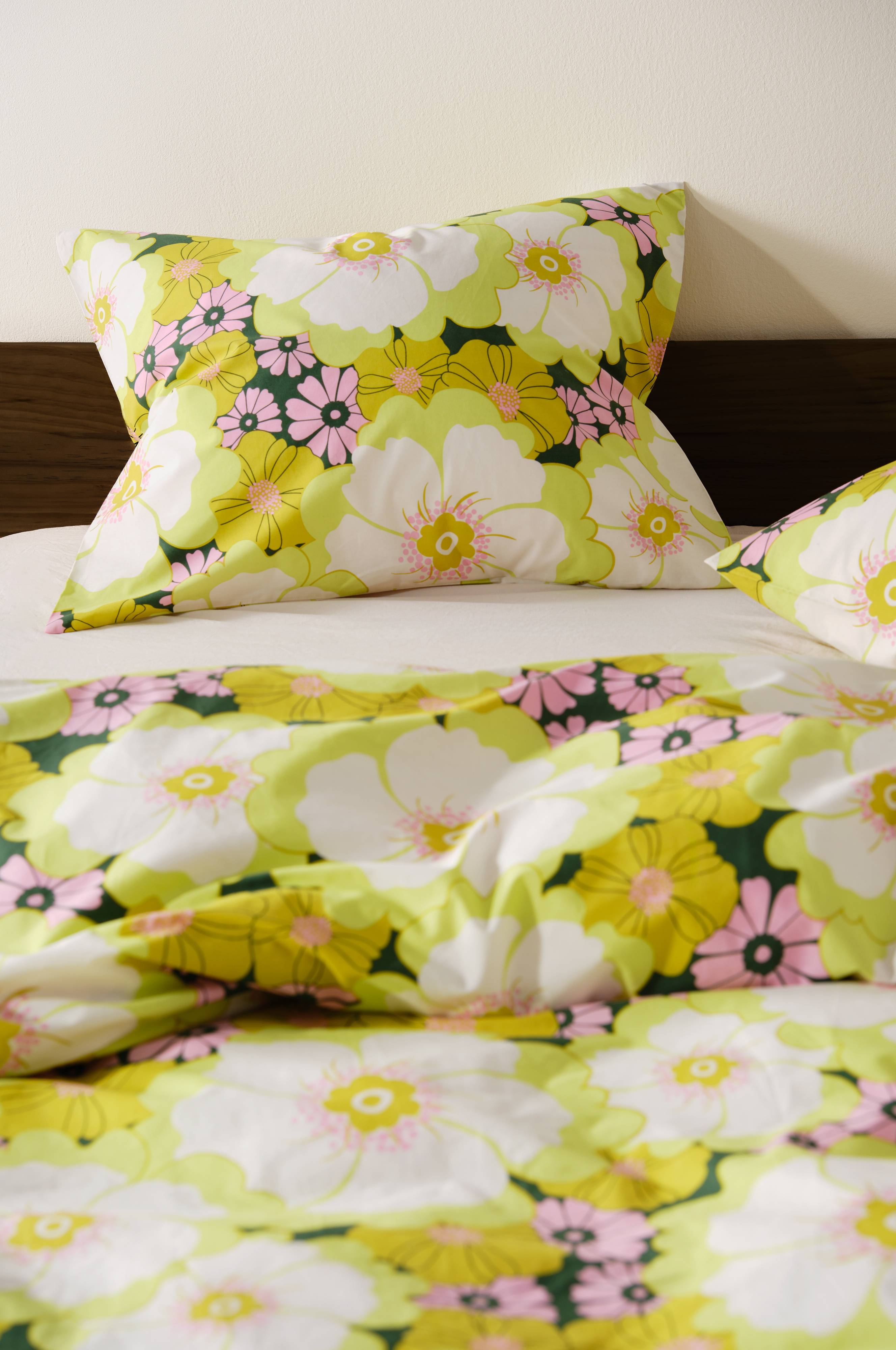 Pudebetræk med et retro blomstermønster designet af Maria Carlberg giver et strejf af vintagecharme til ethvert interiør. FRIDA er fremstillet af økologisk bomuldspercale og giver komfort, samtidig med at det er stilfuldt. Det pigmentprintede design giver et levende udtryk, som gør det til en dejlig tilføjelse til moderne eller retroinspireret indretning. Perfekt til designentusiaster!