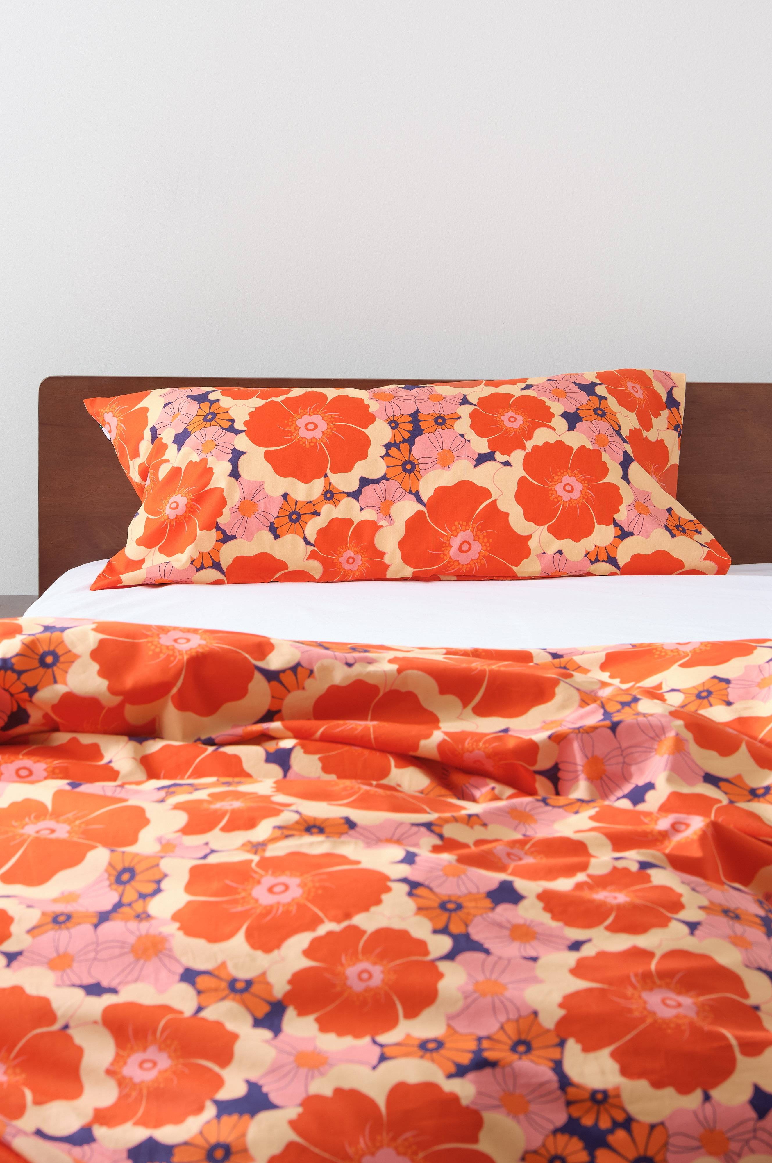 Pudebetrækket FRIDA, som er designet af Maria Carlberg, har et slående retro-blomstermønster, der giver et trendy retro-touch til ethvert interiør. Dette ekstra brede pudebetræk med pigmentprint er fremstillet af økologisk bomuldspercale og tilbyder en unik blanding af komfort og stil, der er perfekt til at opdatere din bolig med kunstnerisk flair.