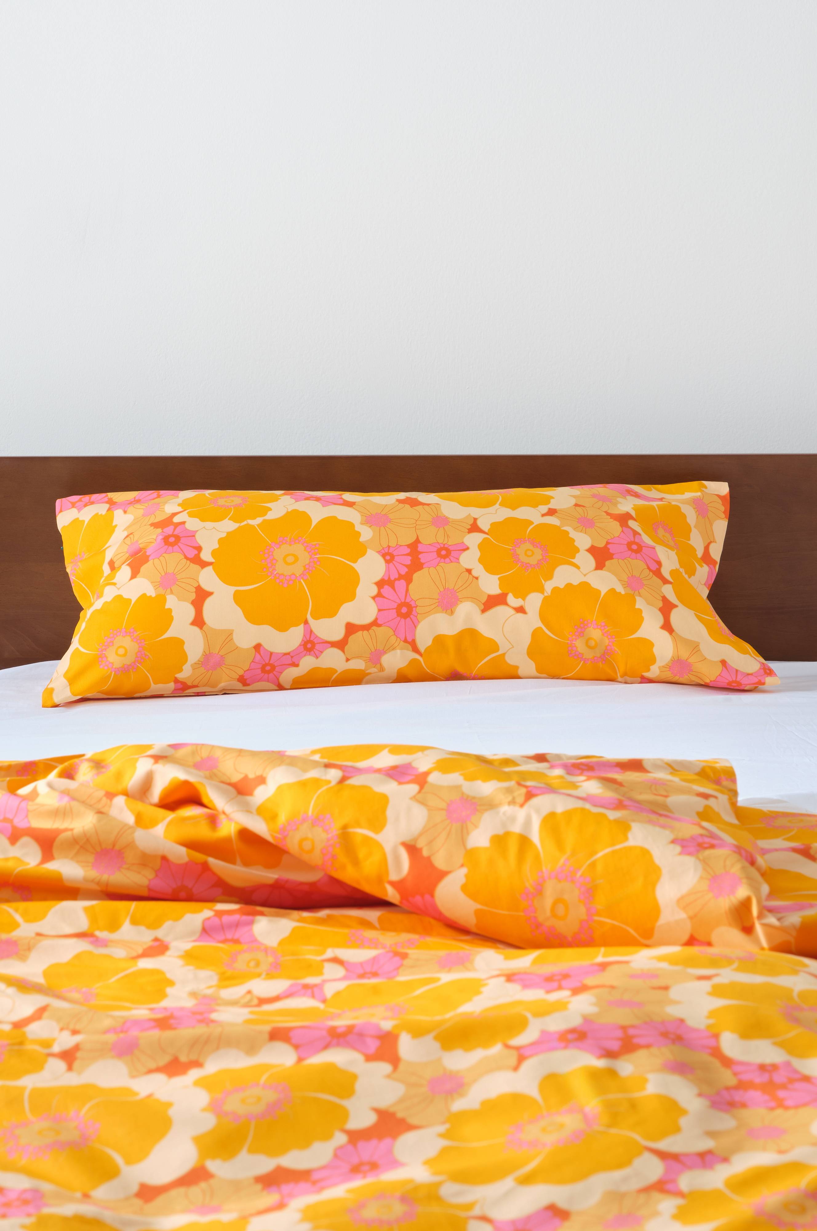 FRIDA pudebetræk giver et strejf af retro-elegance til dit soveværelse. Mønsteret er designet af Maria Carlberg. Disse pudebetræk har et reaktivt trykt retromønster på økologisk bomuldspercale, som giver blødhed og kvalitet. Dyk ned i komfort og stil med FRIDA.