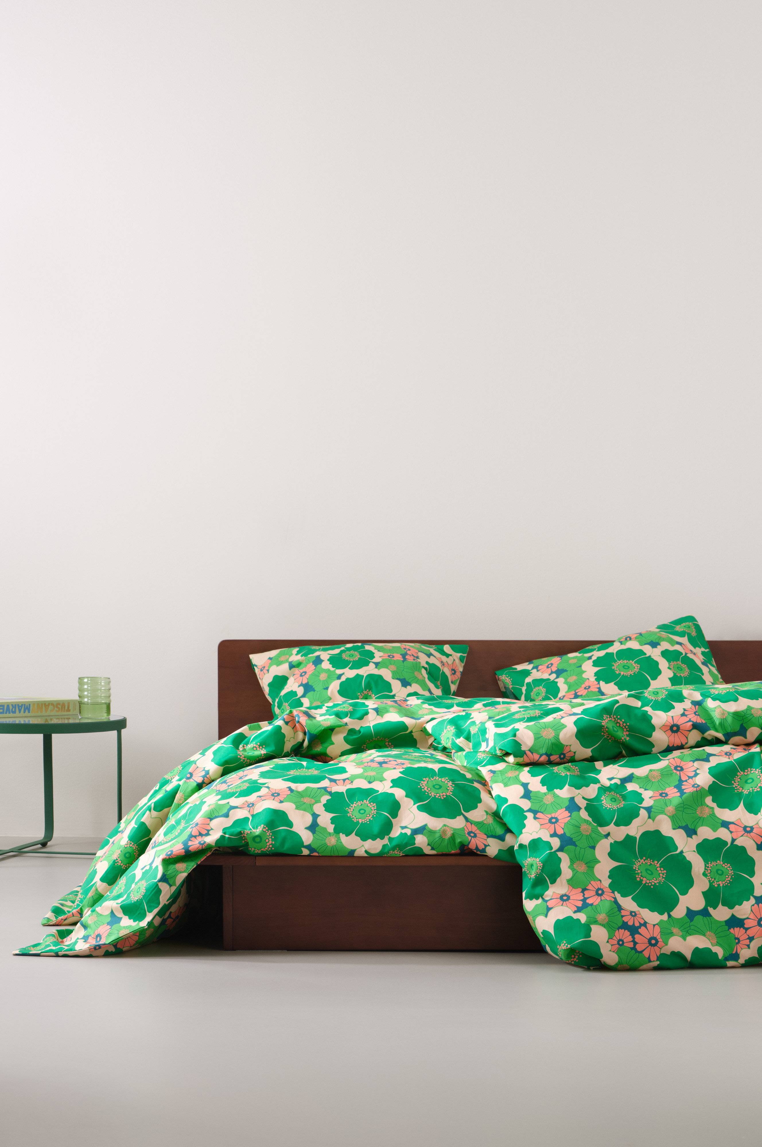 FRIDA sengesæt forvandler ethvert soveværelse med sit retro blomstermønster designet af Maria Carlberg. Det er fremstillet af sprød økologisk bomuldspercale og giver en blød og åndbar fornemmelse for en afslappende nattesøvn. Dette todelte sæt består af et dynebetræk og et pudebetræk med praktiske håndhuller og skjulte trykknapper, som gør det nemt at skifte dyne. FRIDA tilføjer et strejf af vintagecharme til din seng og lover samtidig komfort og stil.