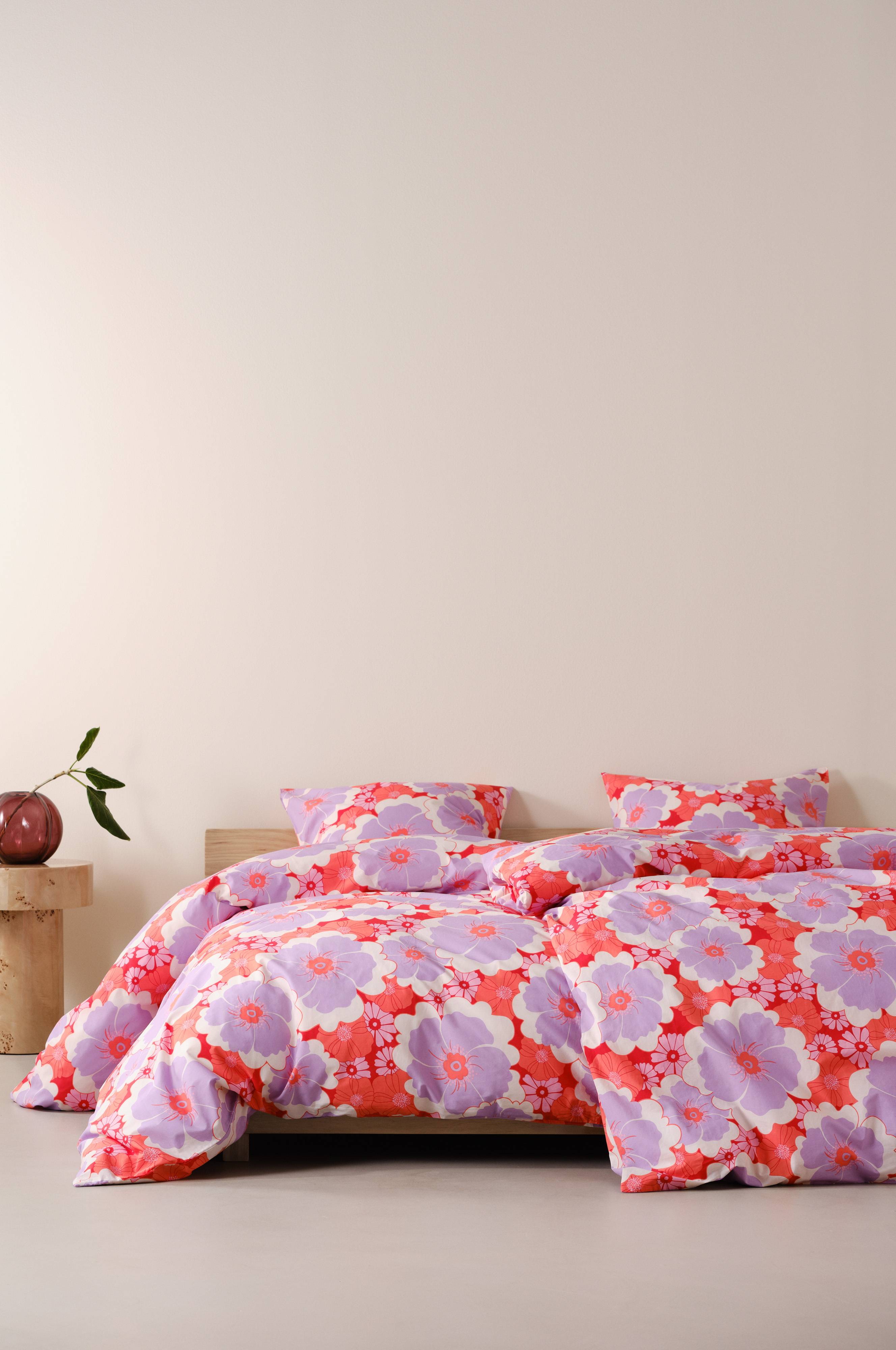 FRIDA sengesæt forvandler ethvert soveværelse med sit retro blomstermønster designet af Maria Carlberg. Det er fremstillet af sprød økologisk bomuldspercale og giver en blød og åndbar fornemmelse for en afslappende nattesøvn. Dette todelte sæt består af et dynebetræk og et pudebetræk med praktiske håndhuller og skjulte trykknapper, som gør det nemt at skifte dyne. FRIDA tilføjer et strejf af vintagecharme til din seng og lover samtidig komfort og stil.