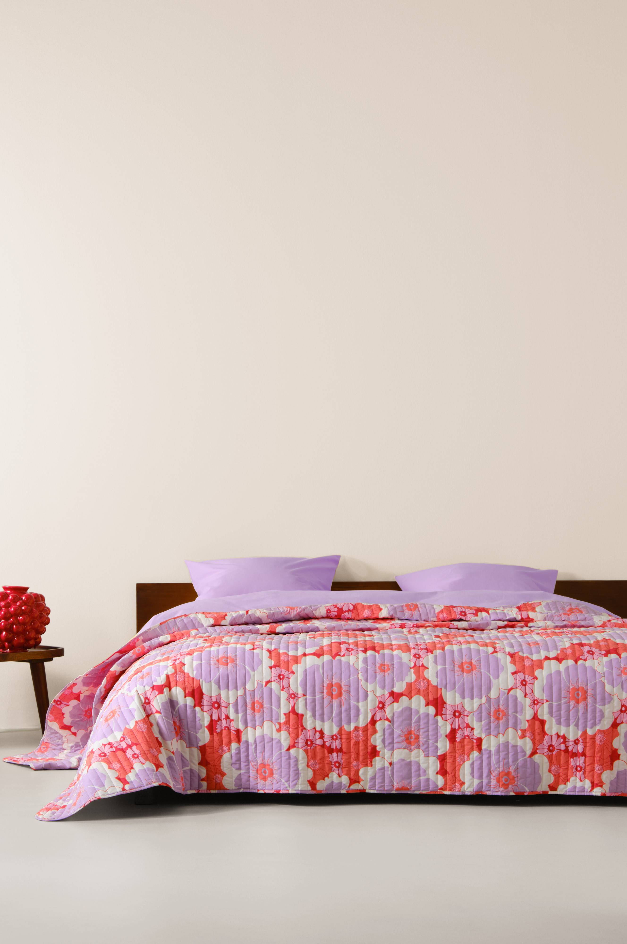 FRIDA-sengetæppet har et charmerende retro-blomstermønster skabt af designeren Maria Carlberg. Med sin karakteristiske diamantquiltning og polyesterfyld giver dette sengetæppe tekstur til ethvert rum. Det pigmentprægede percale-stof af økologisk bomuld sikrer komfort, samtidig med at det giver et stilfuldt udtryk i indretningen, perfekt til dem, der søger trendy, men klassiske designelementer.