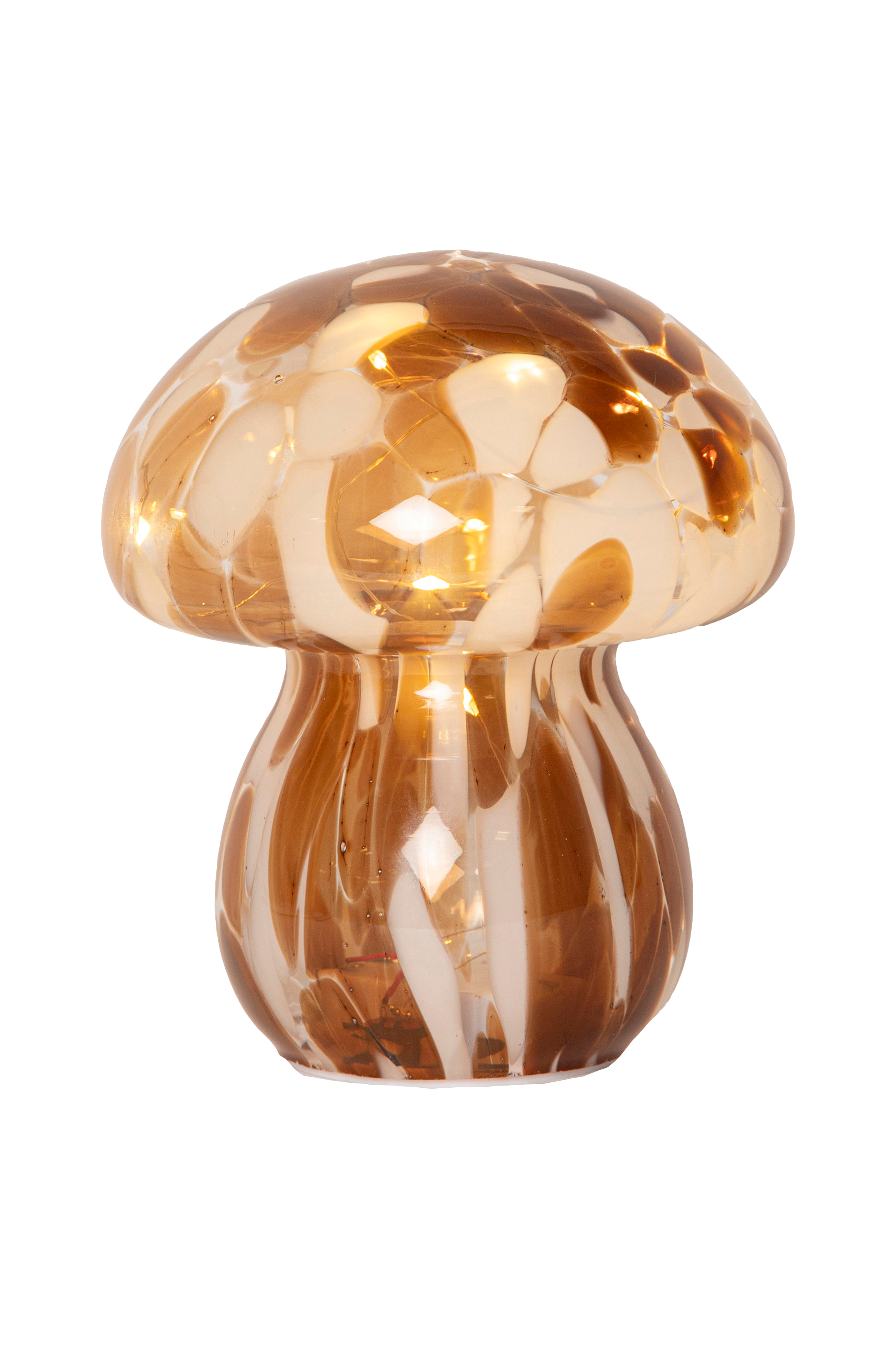 Glasdekoration i form af en champignon tilføjer et strejf af elegance til ethvert rum. Hvert stykke har et unikt brunt og hvidt mønster, der skaber en kunstnerisk og moderne stemning. Den varme hvide glød giver en beroligende stemning, hvilket gør den til en perfekt tilføjelse til din boligindretning. Denne glassvamp er ideel til dem, der sætter pris på særprægede og stilfulde dekorationsgenstande, og den er et must-have til at forbedre din interiøræstetik.