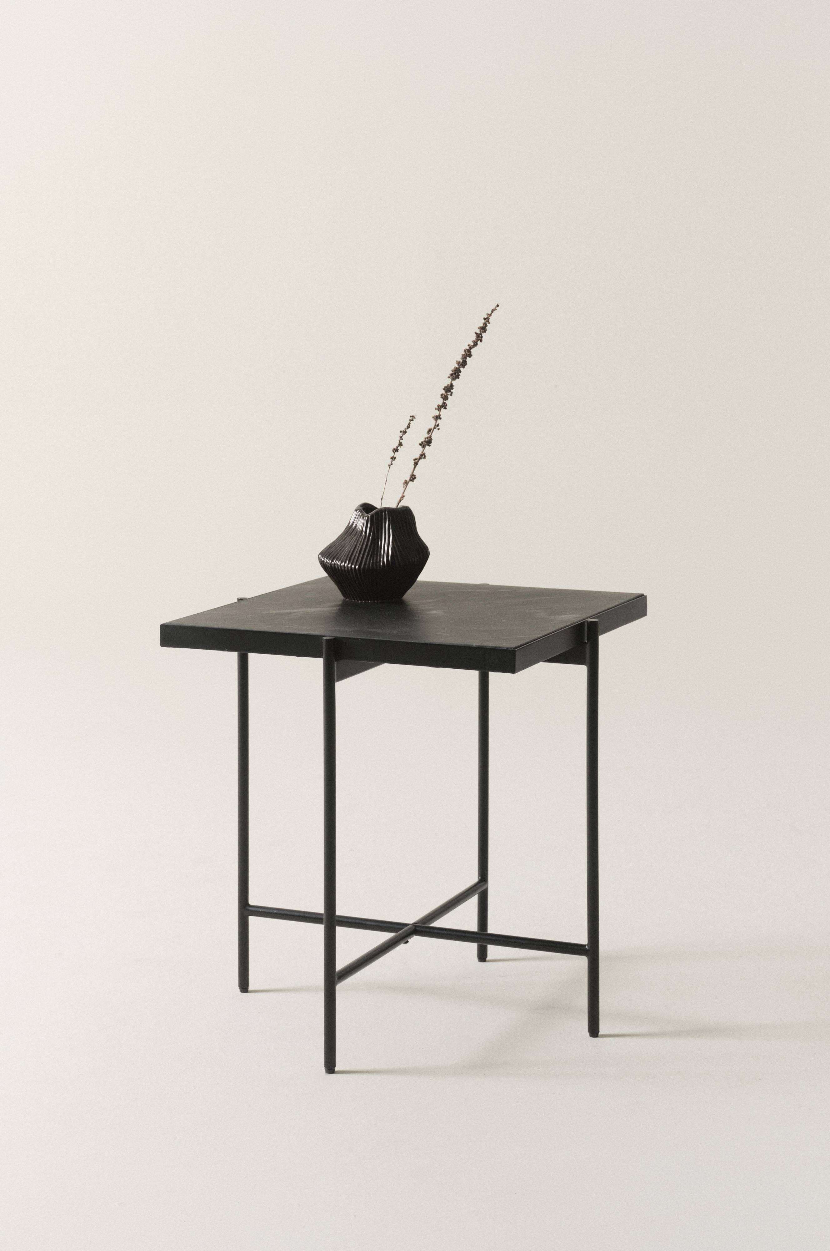 Kvadratisk sidebord med smuk bordplade af mørk marmor og understel af MDF. De dekorative ben er af jern. GALATINA er et klassisk sidebord med tidløs elegance. Marmor er en natursten og mønsteret varierer altid lidt afhængigt af bjergartens sammensætning, hvilket gør hvert møbel unikt. Nogen montering kræves. Samlevejledning medfølger.