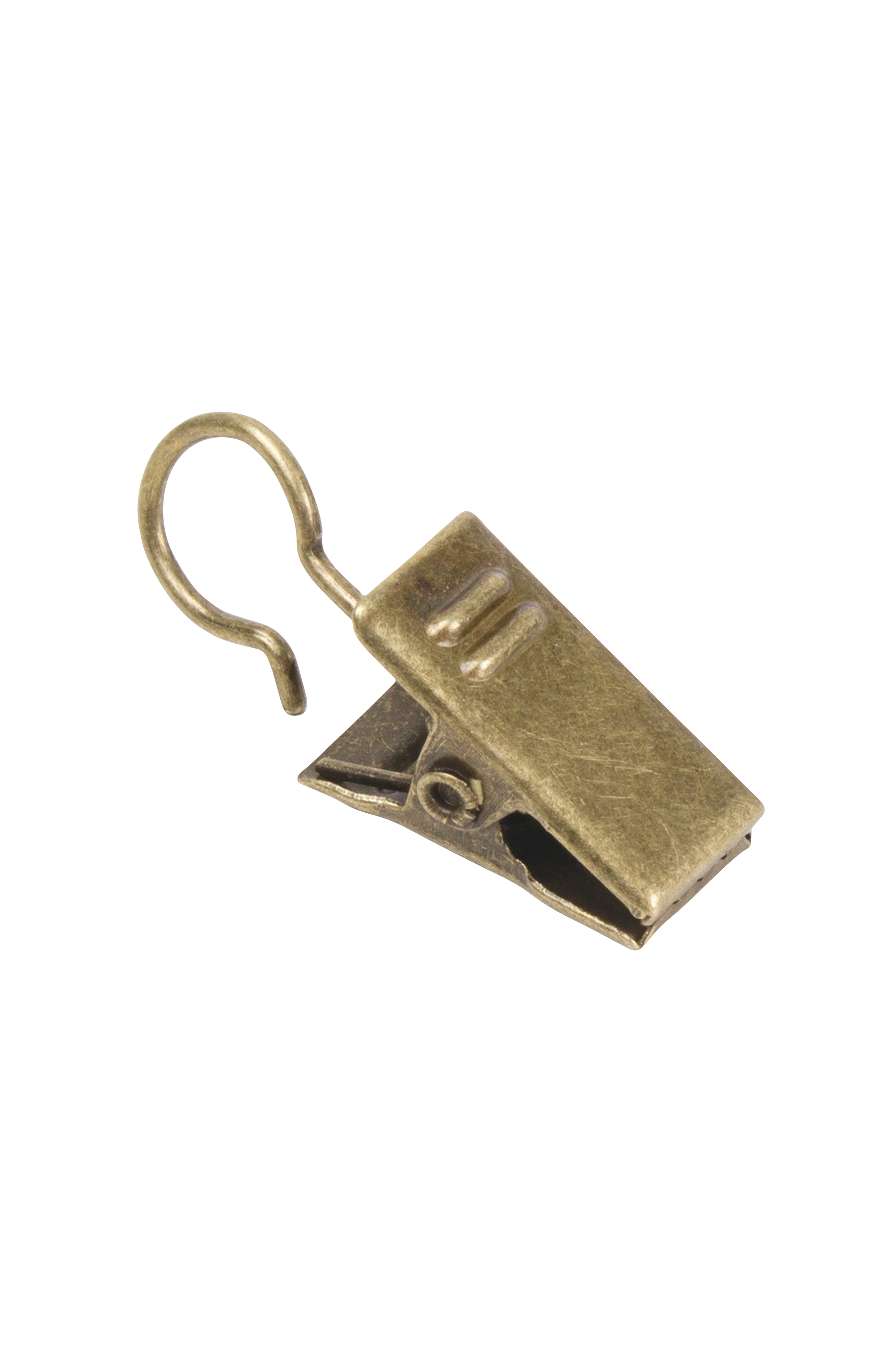 Gardinklemmer i 10-pak af jern. Til enkel ophængning af gardiner eller stof i stropper og ringe. En lille detalje, som kan gøre en stor forskel.