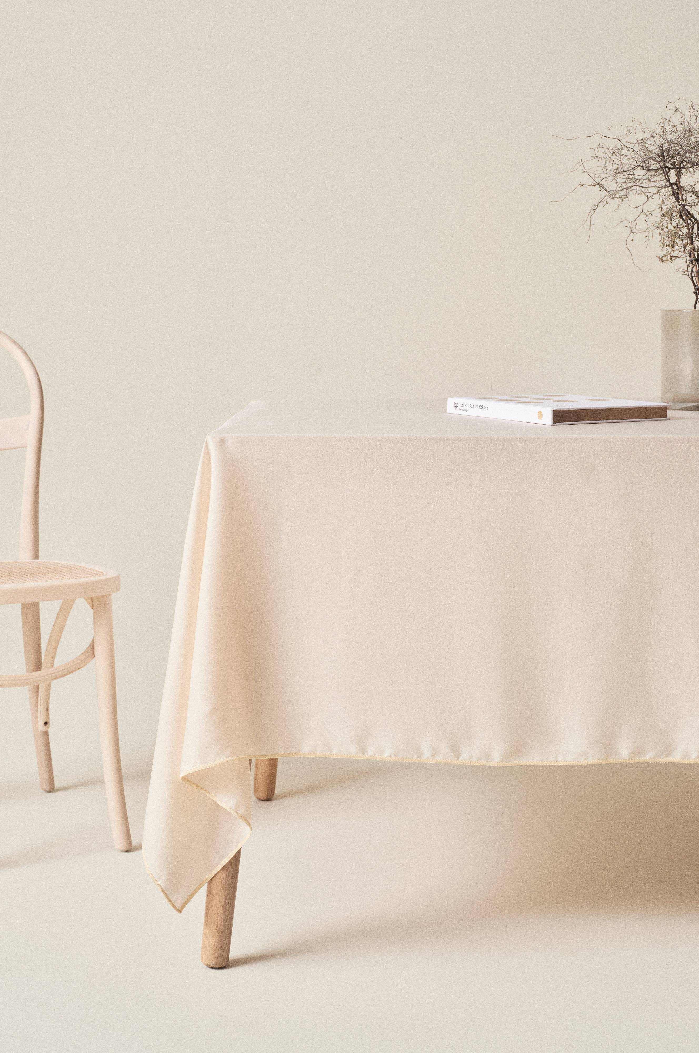 Tip/råd: Dugens herlige kvalitet gør, at det bliver ekstra fint med en stor dug, så du får godt med fald rundt om bordet.