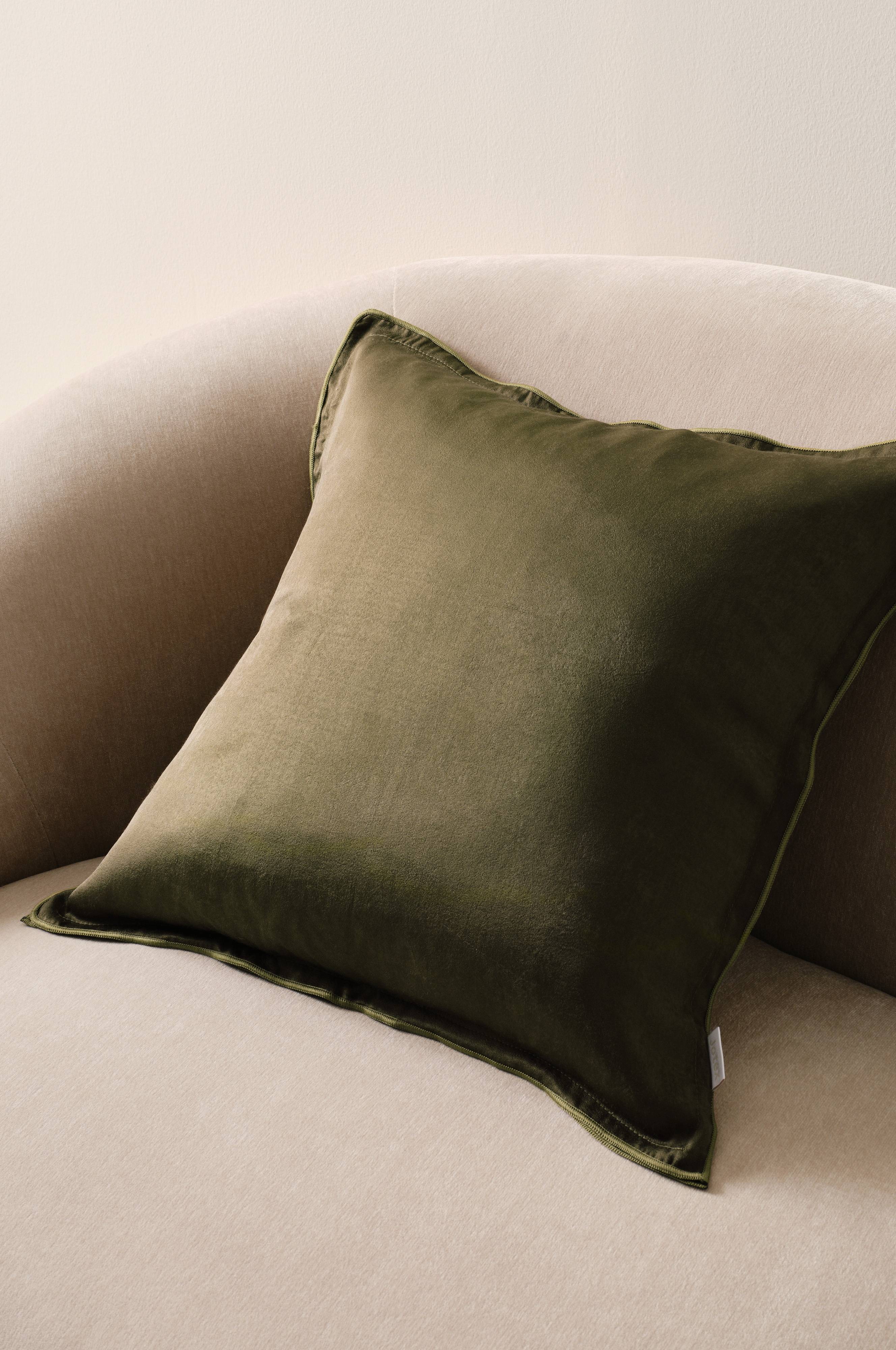 1-pak pudebetræk af ensfarvet polyester i en blød kvalitet med glans. Pudebetrækket har vinge rundt om, kantet med overlocksøm. Vingens bredde 0,5 cm. Skjult lynlås på bagsiden.