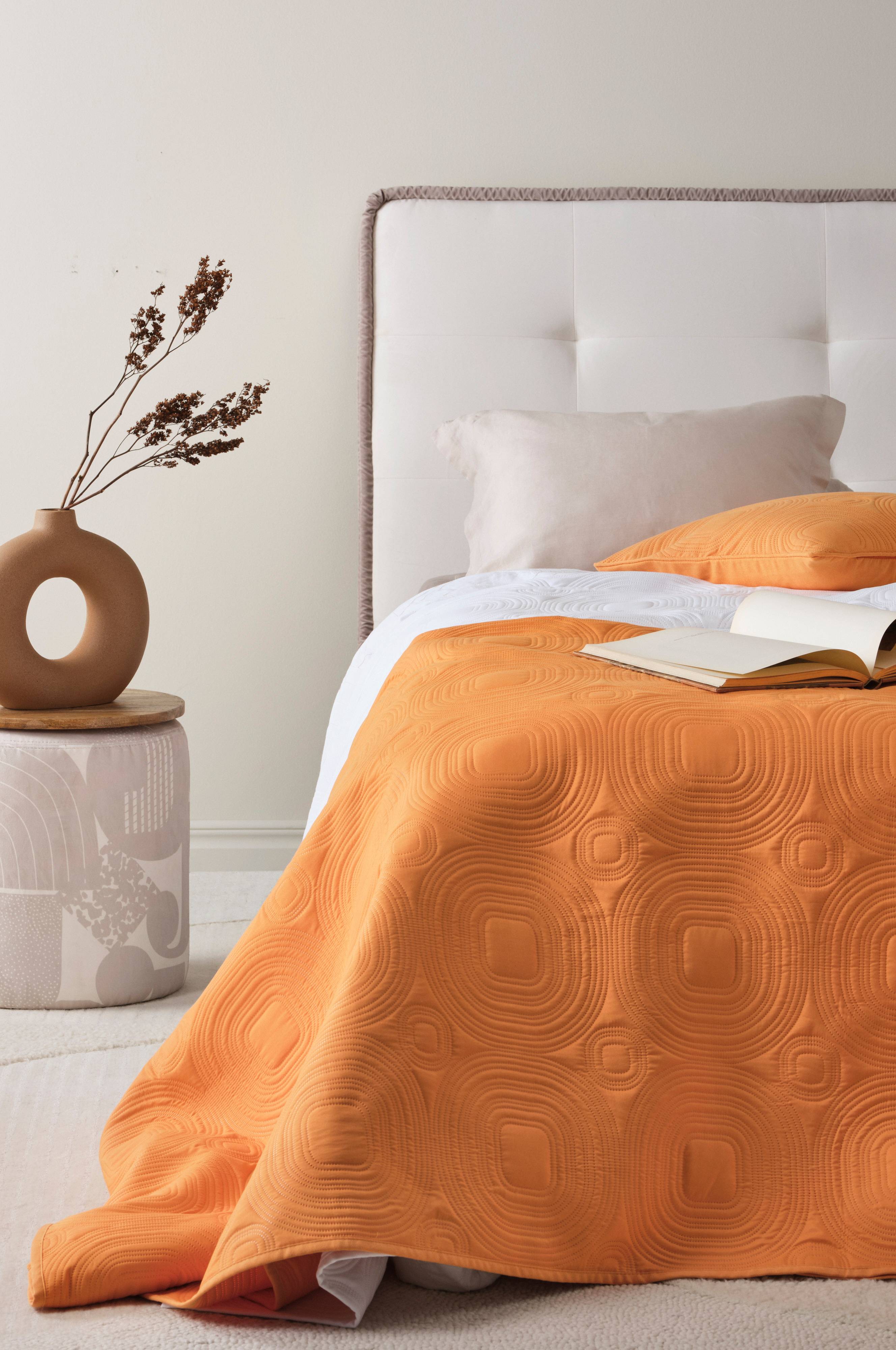 Sengetæppe til enkeltseng. Sengetæppet er af polyester med skønt hørlook og quiltet mønster. Sømmene som giver et dekorativt mønster holder også fyldet på plads. Sengetæppet er kompakt og smidigt og derfor let at håndtere og nemt at rede op med. Søm rundt om giver en flot kant. Pudebetræk medfølger ikke, købes separat.