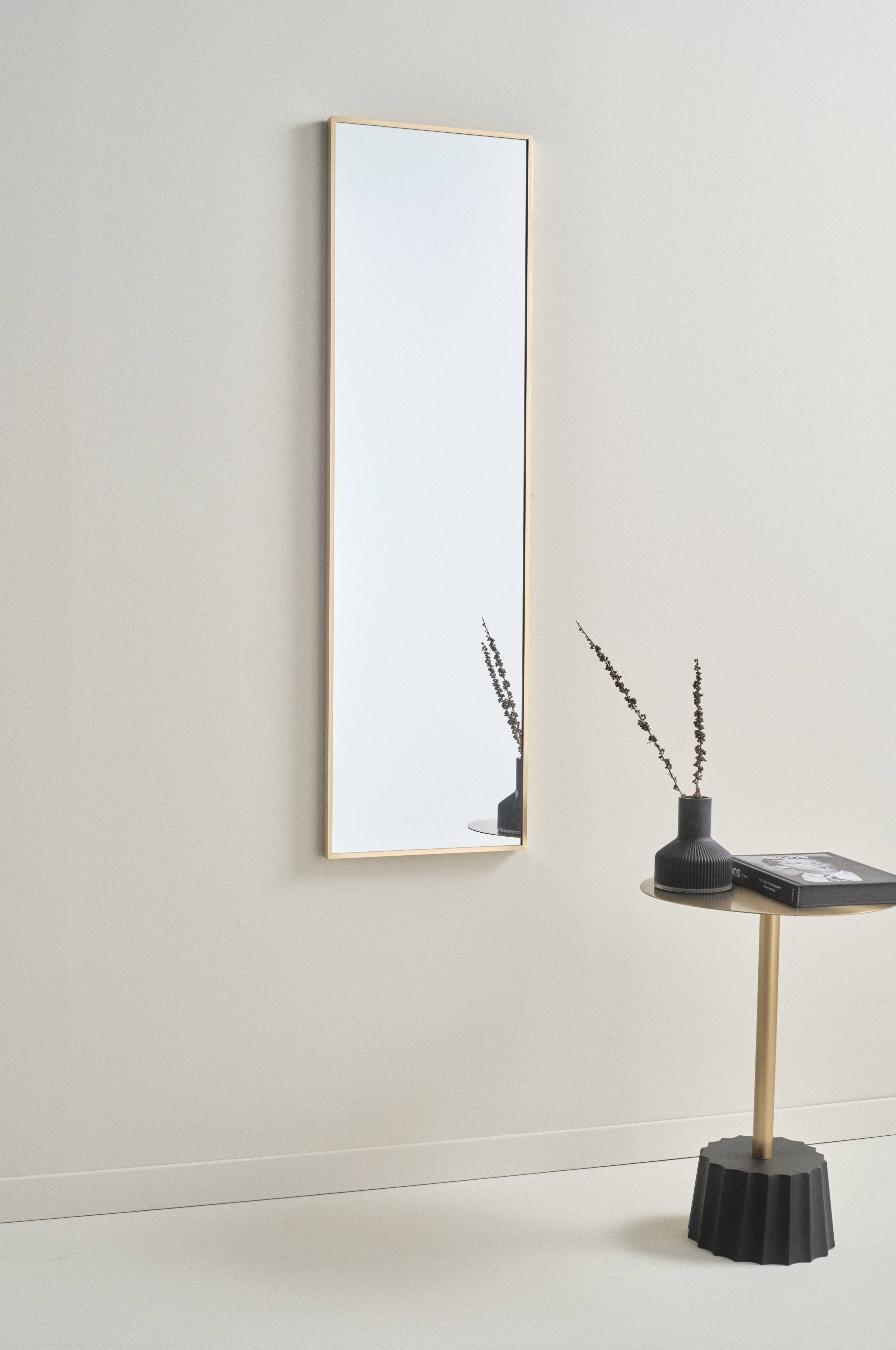 Rektangulært spejl med lækker aluminiumsramme. Rammen har skjult forstærkning af MDF. Tre skjulte beslag på bagsiden, så spejlet kan hænges op både vandret og lodret.