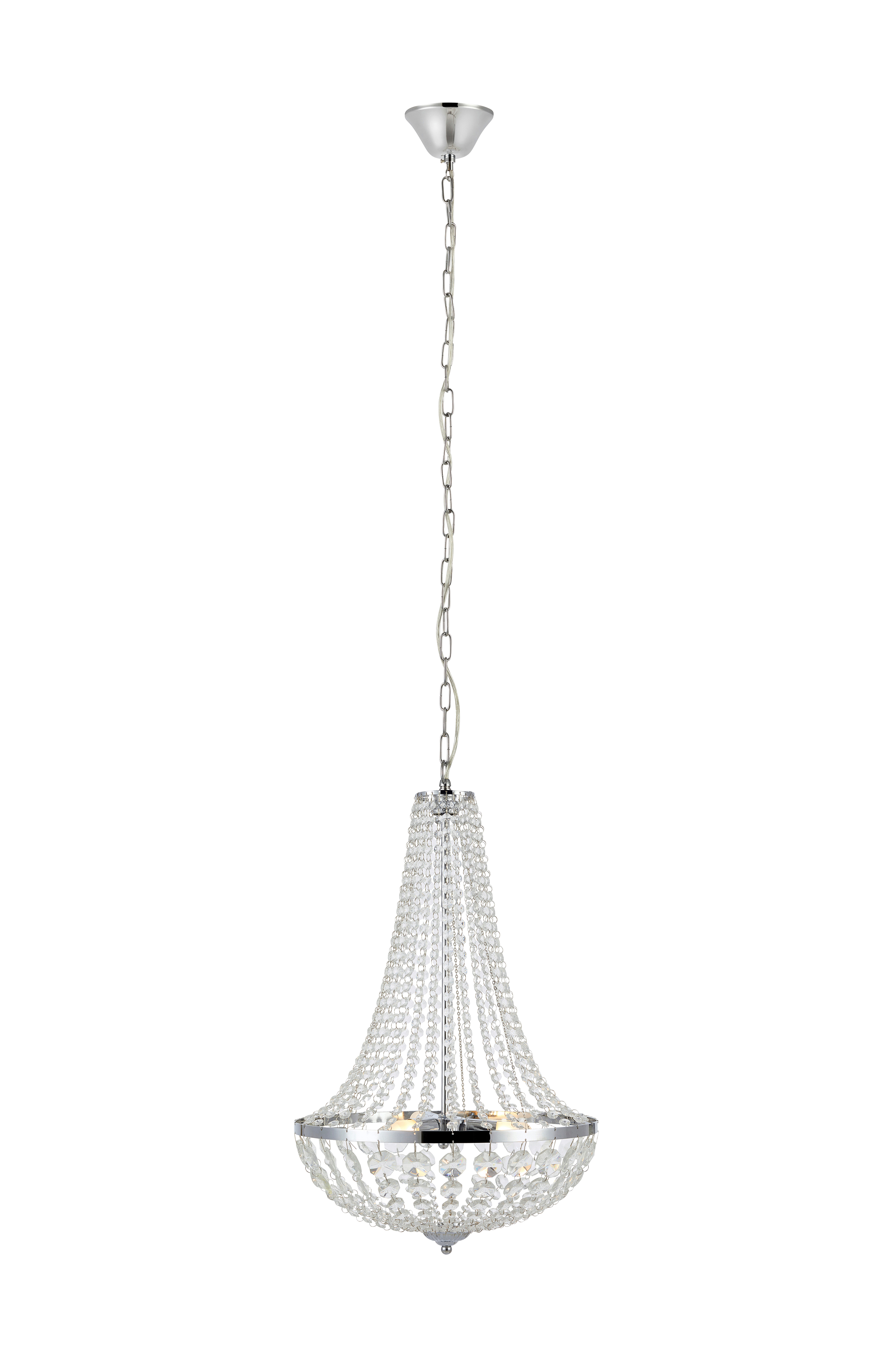 Klassisk krystallysekrone med maskinslebne, klare glasprismer som spreder et fint lys og lidt luksus over spisebordet! Godkendt til badeværelser. Loftstik medfølger ikke pga. nye EU-regler. Det kan købes separat.