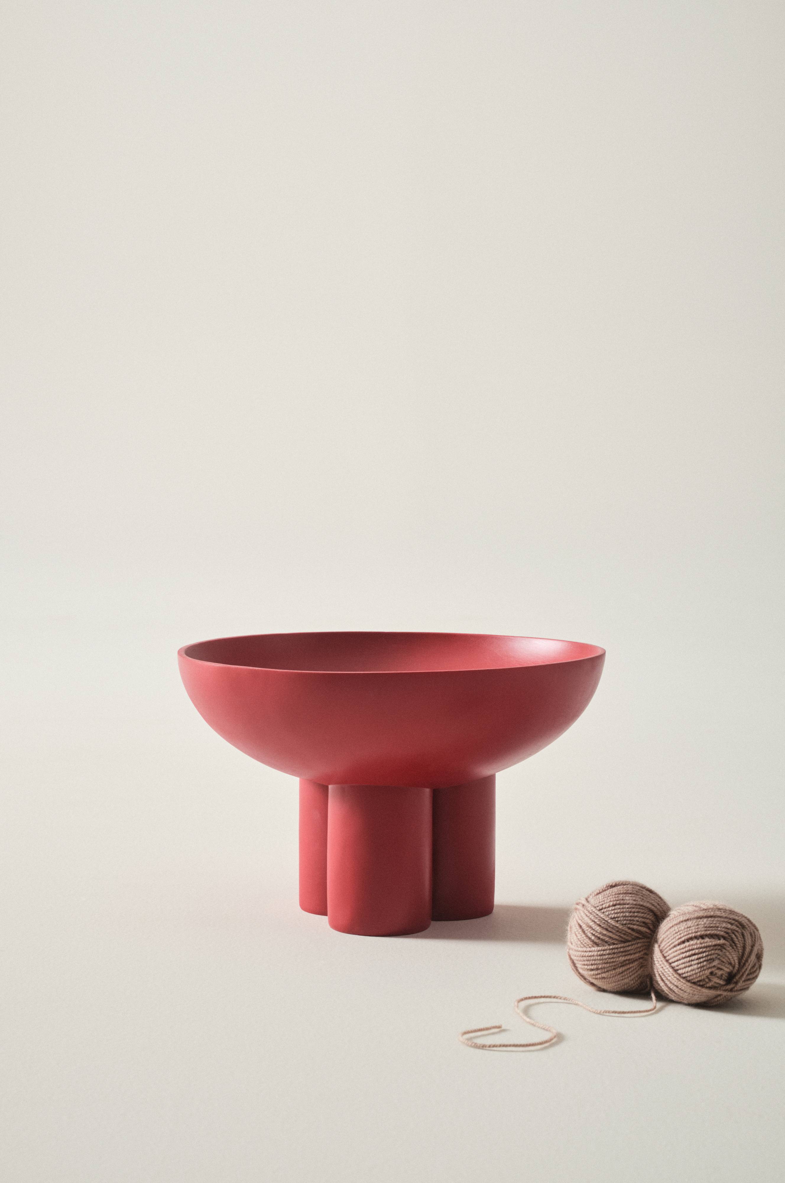 Ensfarvet dekorationsskål af polyresin med mat overflade. Selve skålen har en herlig rund form og de tre ben er samlet i midten under skålen.