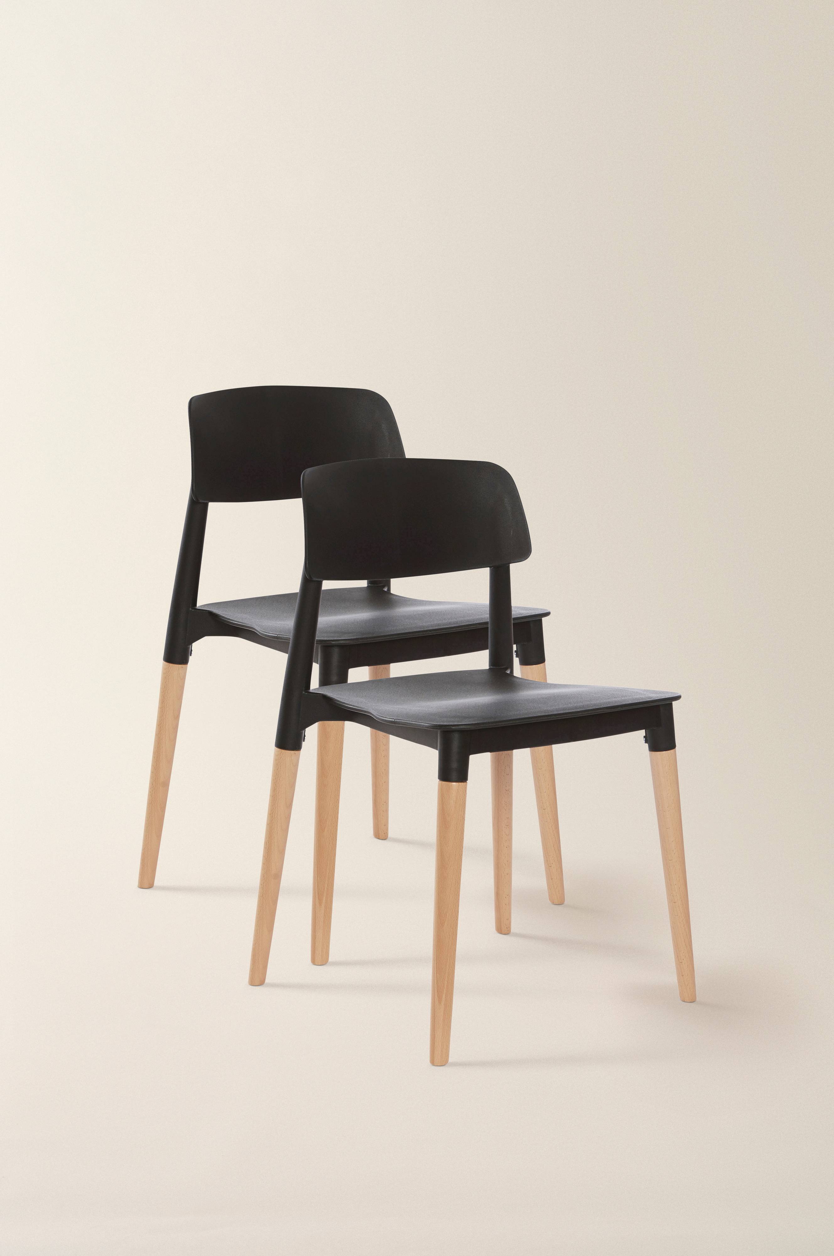 Beskrivelse: 2-pak stole af formstøbt polypropylen og træben af bøg. Kan stables. Skal samles. Monteringsanvisning medfølger.