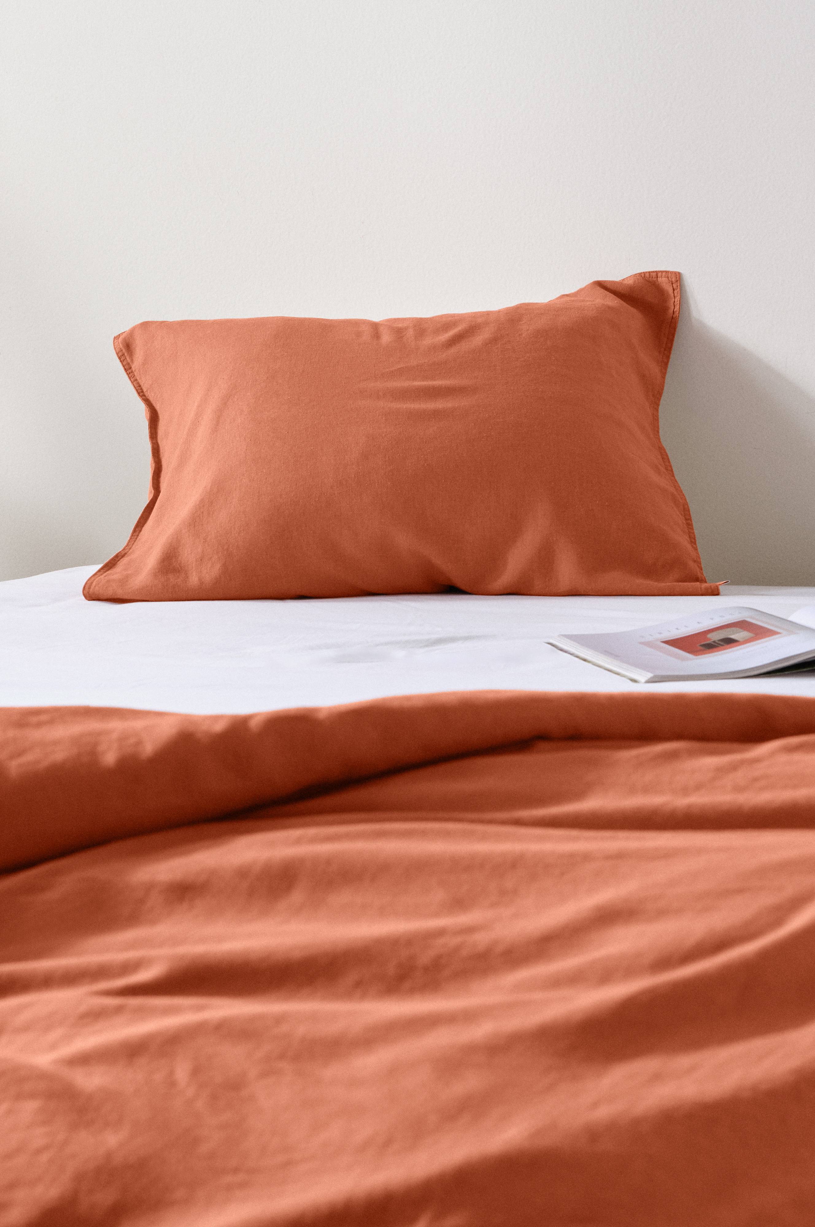 1-pak pudebetræk i behagelig, vasket kvalitet. Hamp og lyocell er blevet kombineret til et stof med en mat overflade og en behagelig hørfølelse. HANNAH er ensfarvet i flotte, lidt dæmpede nuancer. Dobbeltsøm rundt om. Stoffets gramvægt er 130 g/m².