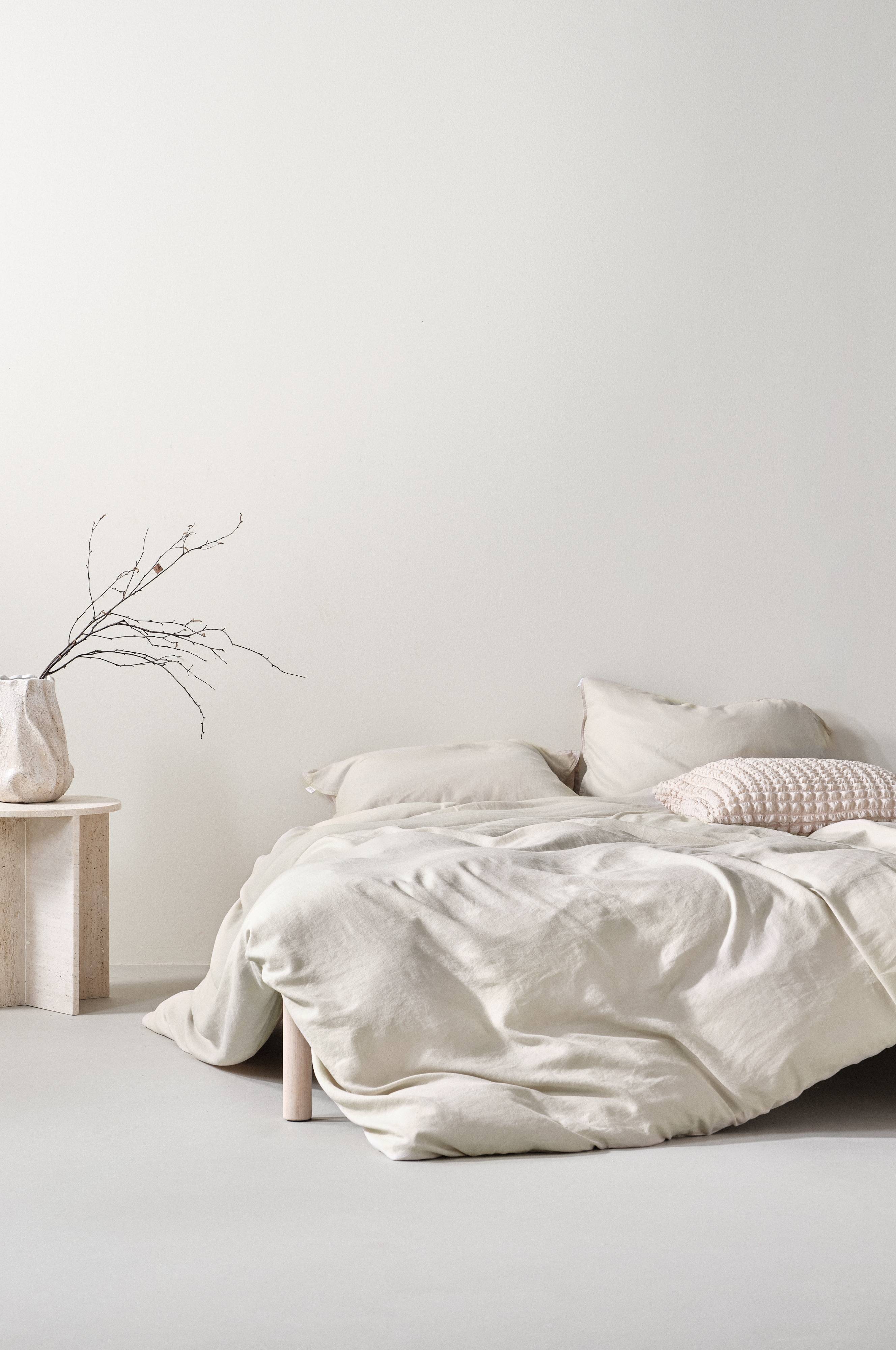 Sengesæt i tre dele, et ekstra bredt dynebetræk og to pudebetræk, i behagelig, vasket kvalitet. Hamp og lyocell er blevet kombineret til et stof med en mat overflade og en behagelig hørfølelse. HANNAH er ensfarvet i flotte, lidt dæmpede nuancer. Dobbeltsøm rundt om på både pudebetræk og dynebetræk. Dynebetrækket lukkes med knapper. Åbning i de øverste hjørner på dynebetrækket, så det er nemt at trække dynebetrækket over dynen. Stoffets gramvægt er 130 g/m².