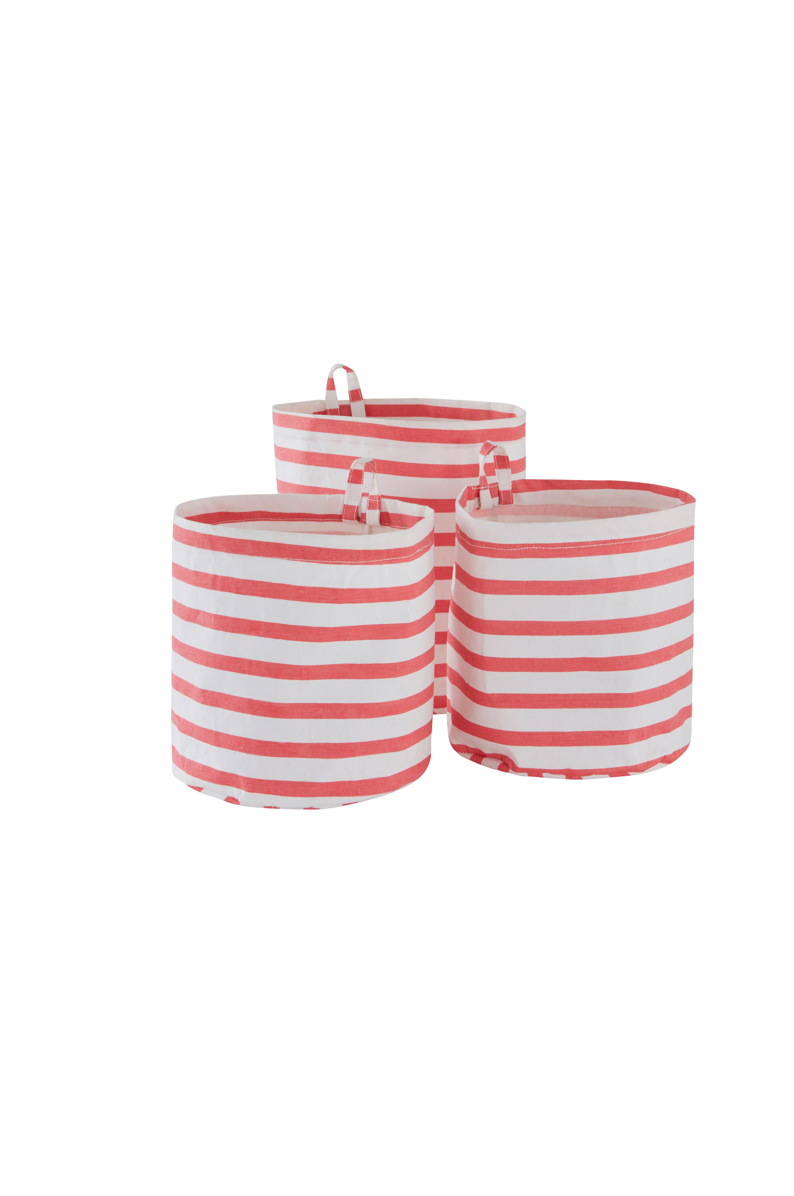 3-pak opbevaringskurve i stribet, vævet bomuld og polypropylen. Alle kurvene har et praktisk håndtag på den ene side, så du nemt kan hænge dem op.