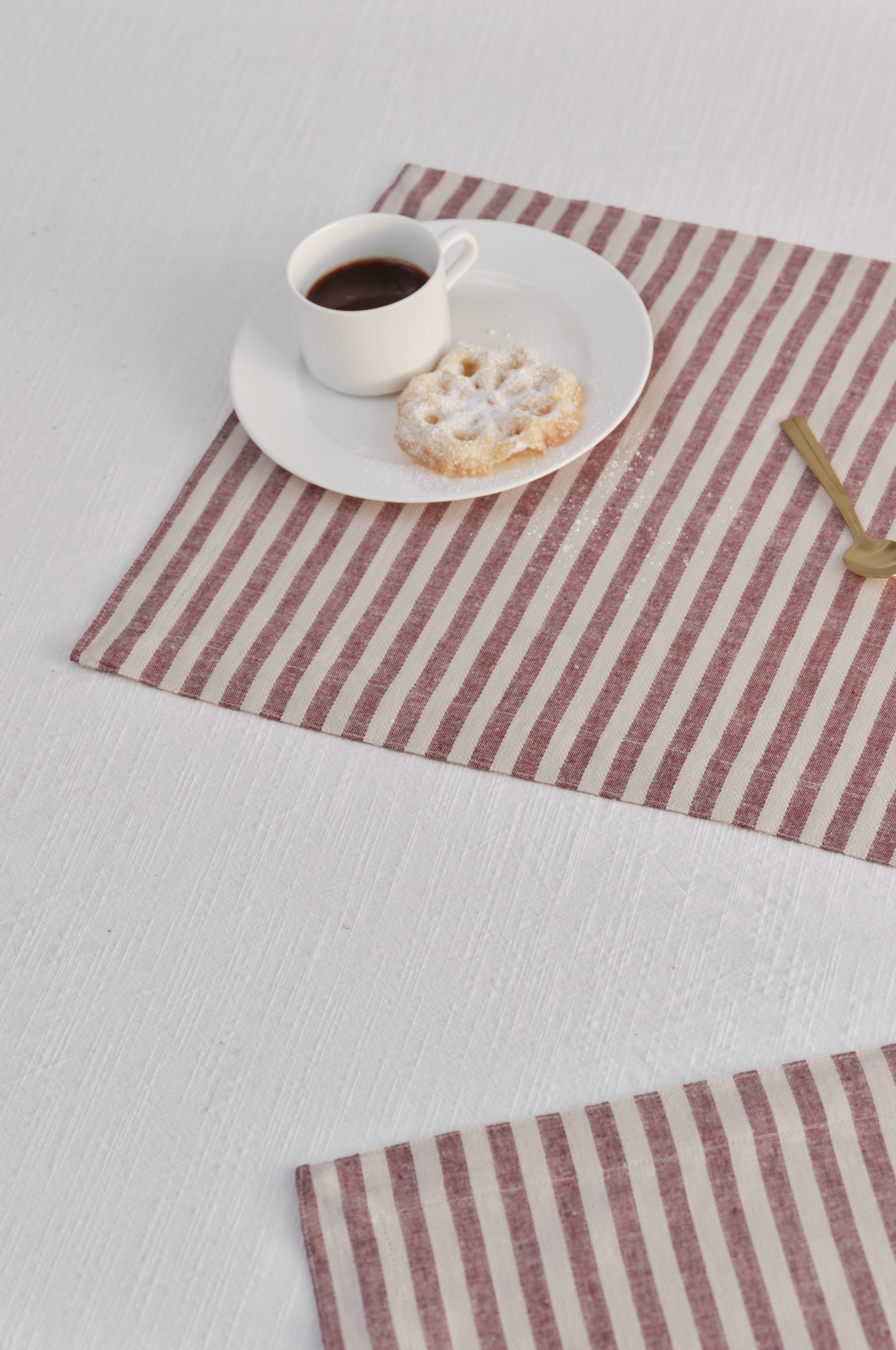 HERIBERT-dækkeservietten giver spisebordet et trendy touch med sit garnfarvede, stribede stof. Den er fremstillet af en blanding af bomuld og hør og har en stilfuld tekstur, der gør spisebordet mere attraktivt. Som en del af HERIBERT-familien passer den smukt sammen med matchende elementer for et koordineret og moderne look.