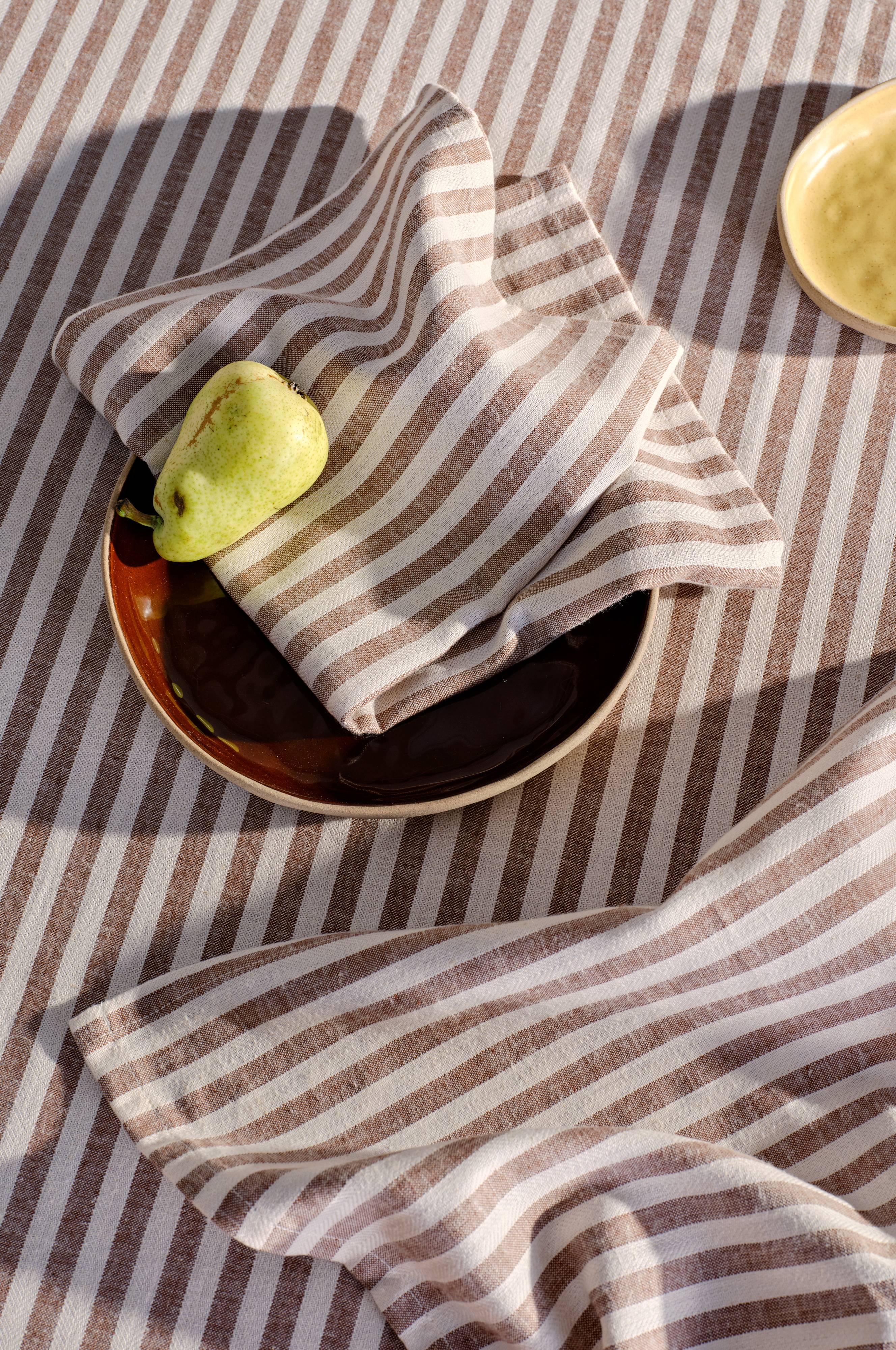 HERIBERT-servietten er en blanding af bomuld og hør i et garnfarvet, stribet design. Disse servietter, der passer perfekt til din indretning, kommer i en pakke med to og tilhører HERIBERT-familien med matchende varer for et sammenhængende look. Ideel til at tilføje et strejf af charme til din borddækning.