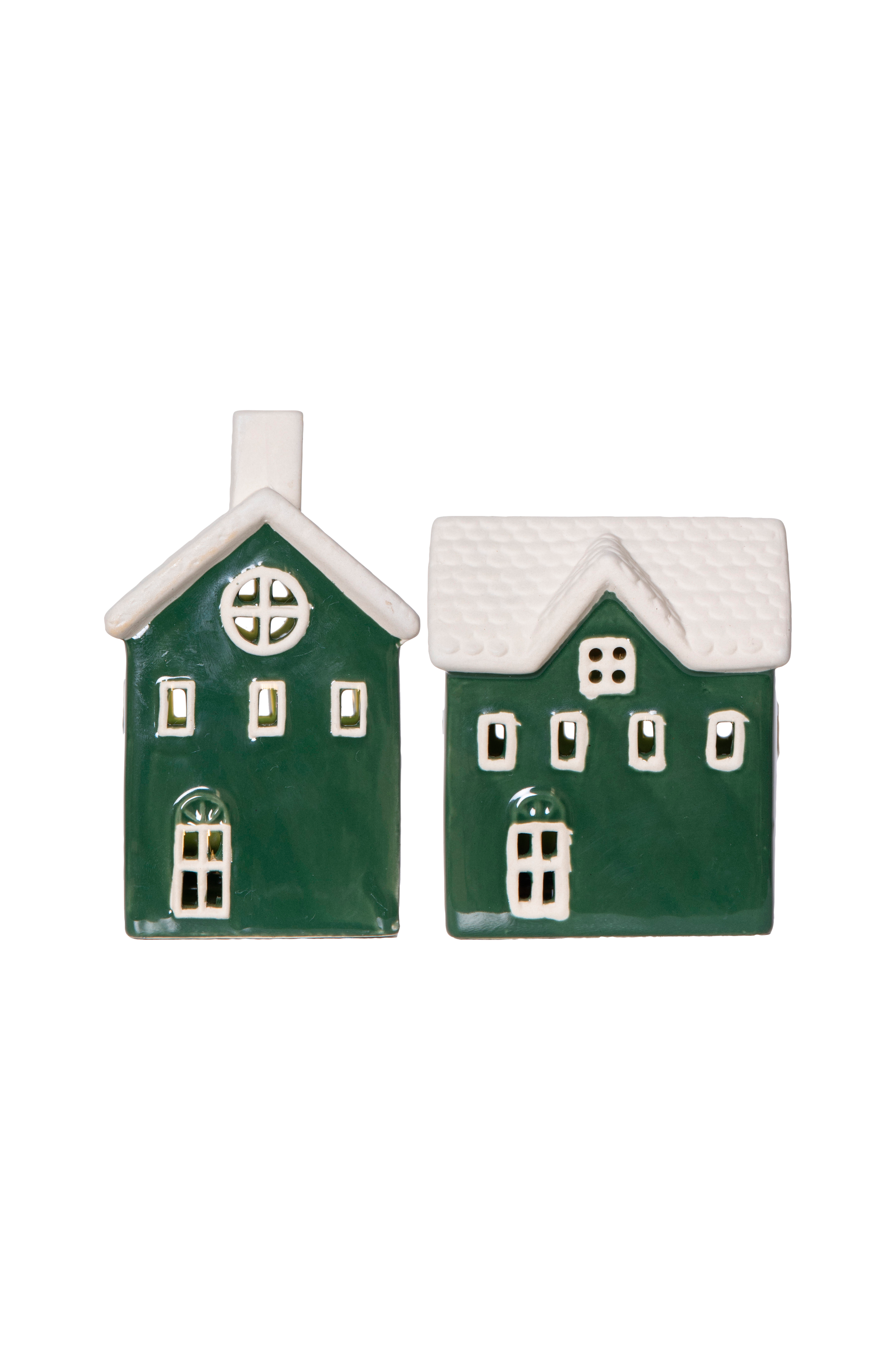Keramiske hussæt bringer festlig charme til dit hjem. Disse grønne, batteridrevne dekorationer er perfekte til jul og advent. Hvert hus udsender et blidt skær med et LED-lys, der skaber varme og hygge indendørs. De sælges parvis og lyser op i ethvert rum, hvilket gør dem til et ideelt valg til sæsonindretning. Fremhæv din julestemning med disse charmerende miniaturehuse og tilføj et strejf af fortryllelse til dine festligheder.