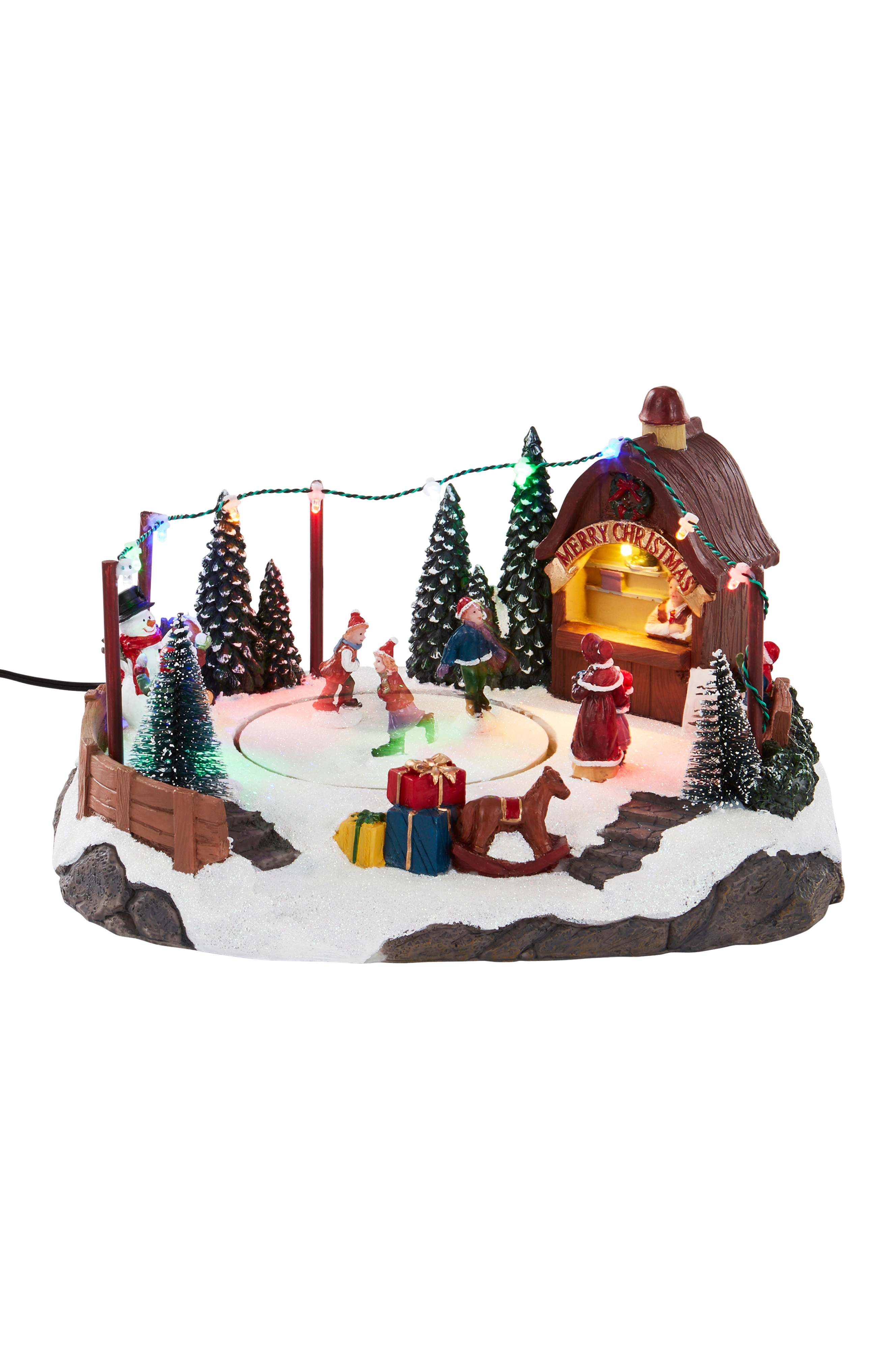 Festlig dekoration med en charmerende skøjtebane, der drejer rundt og spiller musik, perfekt til jul eller advent. En munter snemand og blinkende lyskæder bidrager til den fortryllende scene. Stil denne fine dekoration på et bord eller en hylde for at fylde dit hjem med glædelig julestemning og varme.